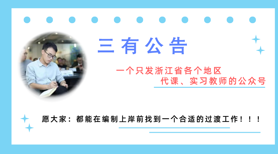 1:一个只发浙江省各个地区的代课、实习、非编的公众号;每日都更新!!!