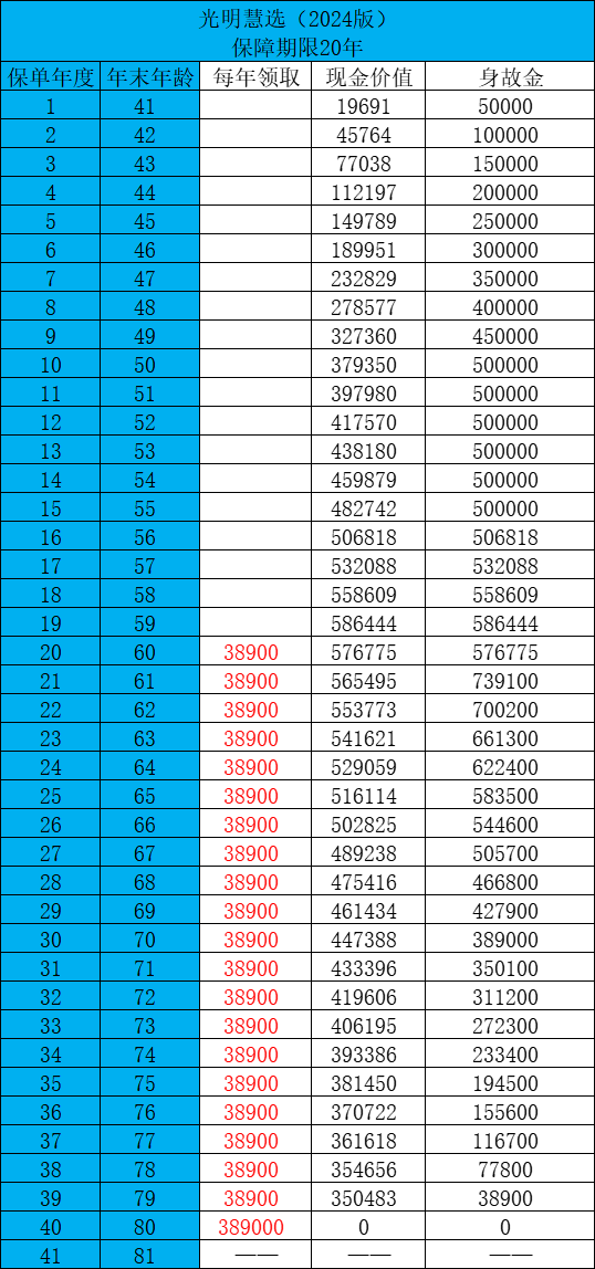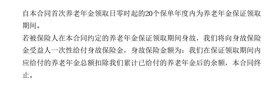 有的产品保障期限20年,常见的是领取20年,第21年给「每年领取×10」。