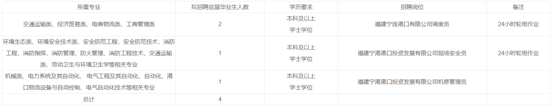 宁德港务集团有限公司作为福建港口集团在宁德区域建设和运营港口物流主业的平台,为福建港口集团二级企业,承担着宁德市公共码头、航道等基础设施建设、营运任务。主要从事港口装卸、仓储、物流,船舶代理、货物代理、理货,港口码头设计、建设等业务。本次主要为下属公司招聘。