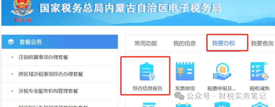 第一步:公司现有财务人员登录电子税务局,点击我要办税→综合信息报告→身份信息报告→一照一码户信息变更