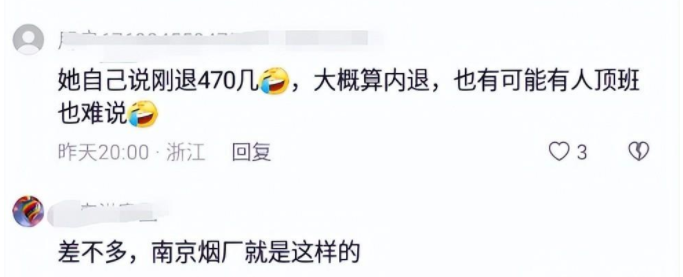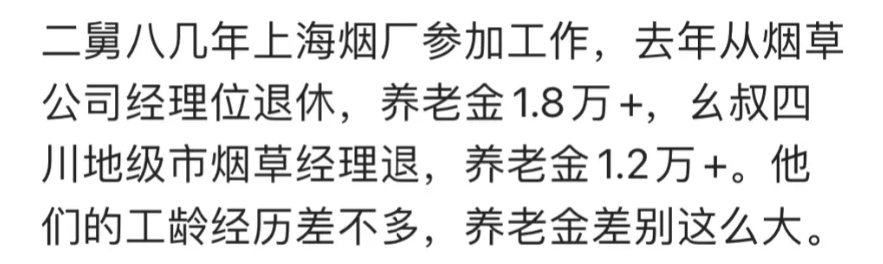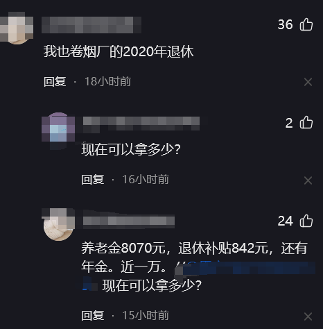 最近,一位从上海卷烟厂的退休的老太太,分享了自己的退休故事,聊到养老金的时候,网友们直呼不敢相信。这位阿姨1964年参加工作,期间争取名额上了“七二一工人大学”,之后回到科室当了干部,随后在1992年响应号召率先下岗,自谋生路了几年,于1999年55岁退休。退休的时候养老金是400多,这些年上涨之后,可以拿到4000多。听到老太太的养老金后,很多网友表示不敢相信,上海的养老金不是平均能达到5000吗?况且她还是上海卷烟厂的退休干部,怎么只拿到4000多?有网友说,这位阿姨是内退,记工龄,按月给点生活费,到退休年龄再去原厂办理退休,她母亲就是这样。也有网友表示,1999年那时候退休金就是这个水平。还有网友点赞这位上海阿姨,那个年代勇于放弃工作去深造,最后主动下岗少拿好多钱。还有一位同样在卷烟厂退休的网友,2020年退休,现在每个月可以拿到近1万的退休金。大家感慨,随着社会平均工资增长和物价上涨,现在退休的老人比老一辈的养老金高很多。这位上海阿姨起初的养老金只有400,基数小,即便是经过养老金的18连涨,翻了10倍也就只有4000,比现在同岗退休的少很多。 而说到卷烟厂、烟草公司,很多网友都表示很羡慕,因为中国烟草无疑是天花板级别的国企。中国烟草员工的退休金包含多个部分:基本养老金、个人账户养老金、企业额外资助和调整补贴等。看来,近年从烟草公司退休的员工,每个月至少可以领到7000-10000的退休金。 2022年,中国烟草的税利总额1.44万亿元,净利润大概2500亿元,也就是说2022年交税交了1.19万亿元。(2023年还未公开)。作为国家财政中不可或缺的支柱,中国烟草对员工的待遇和福利也展现了国有企业的强大实力和对员工的关怀。 |
