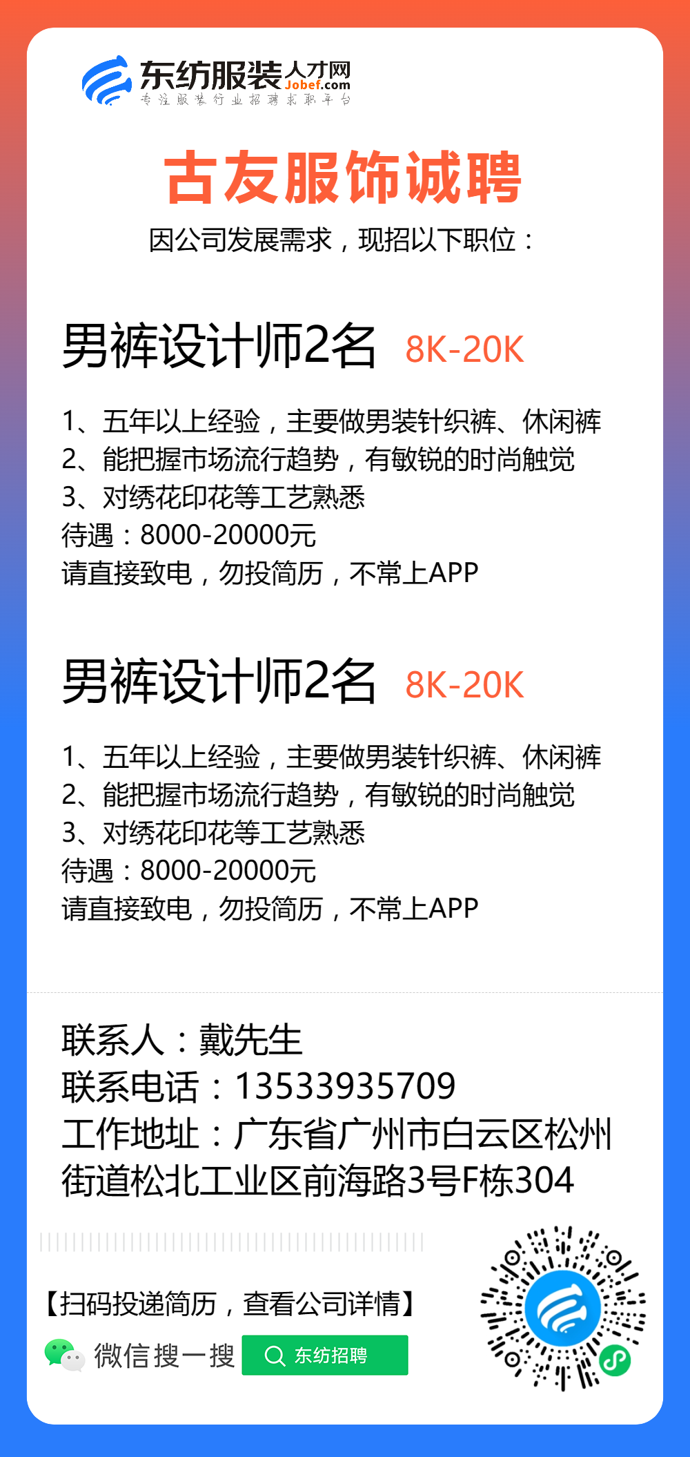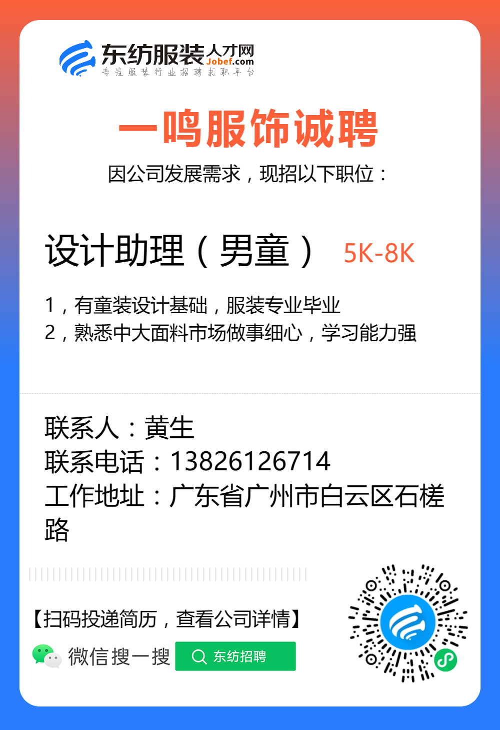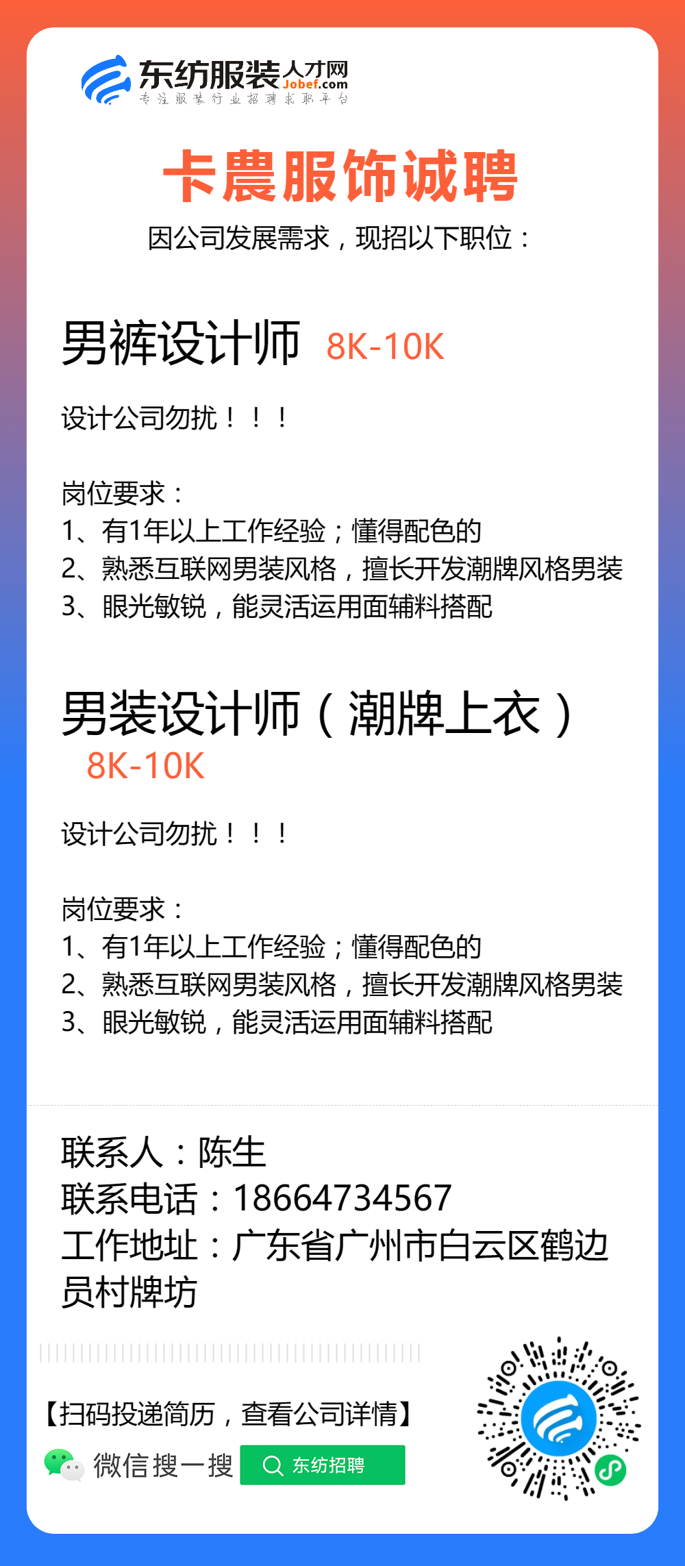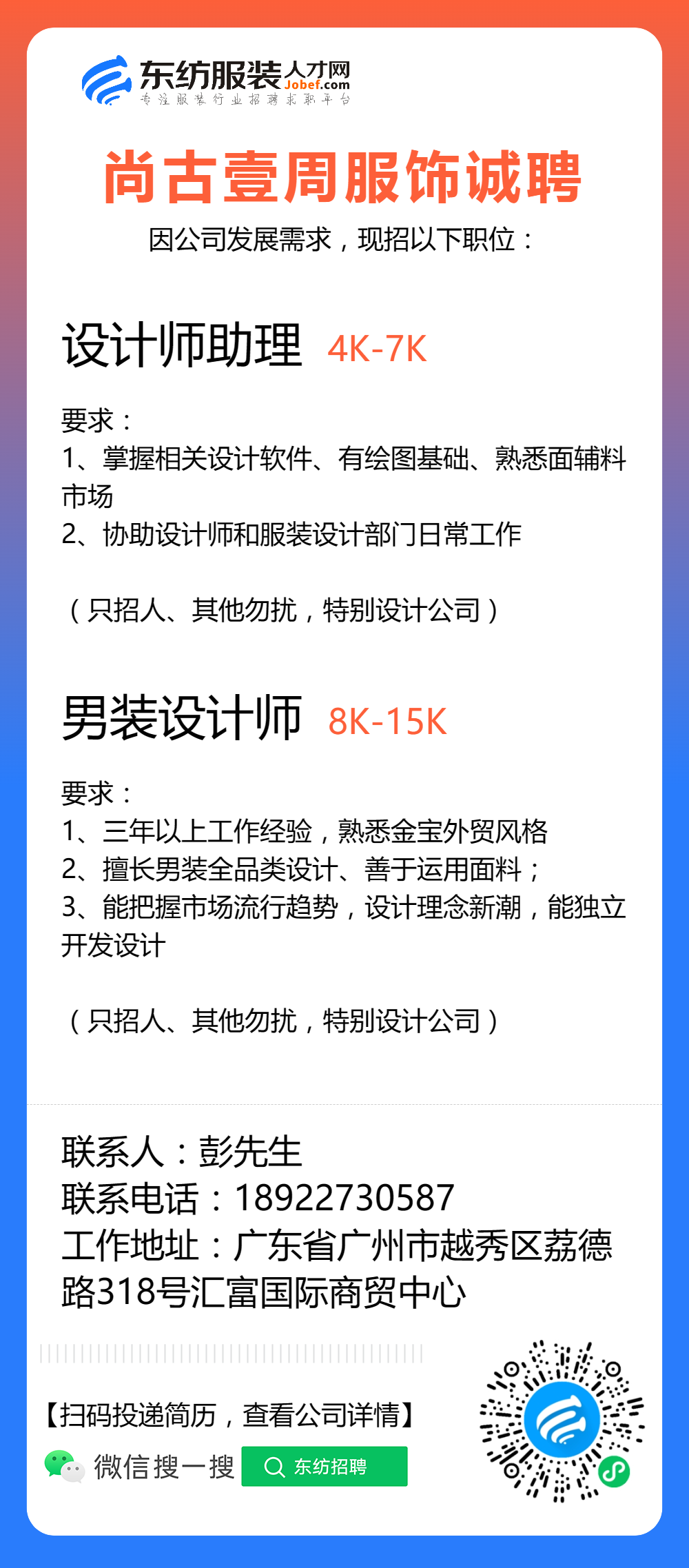 >服装招聘·设计类丨3. 25号,女装设计师、男装设计师、童装设计师、设计助理.....