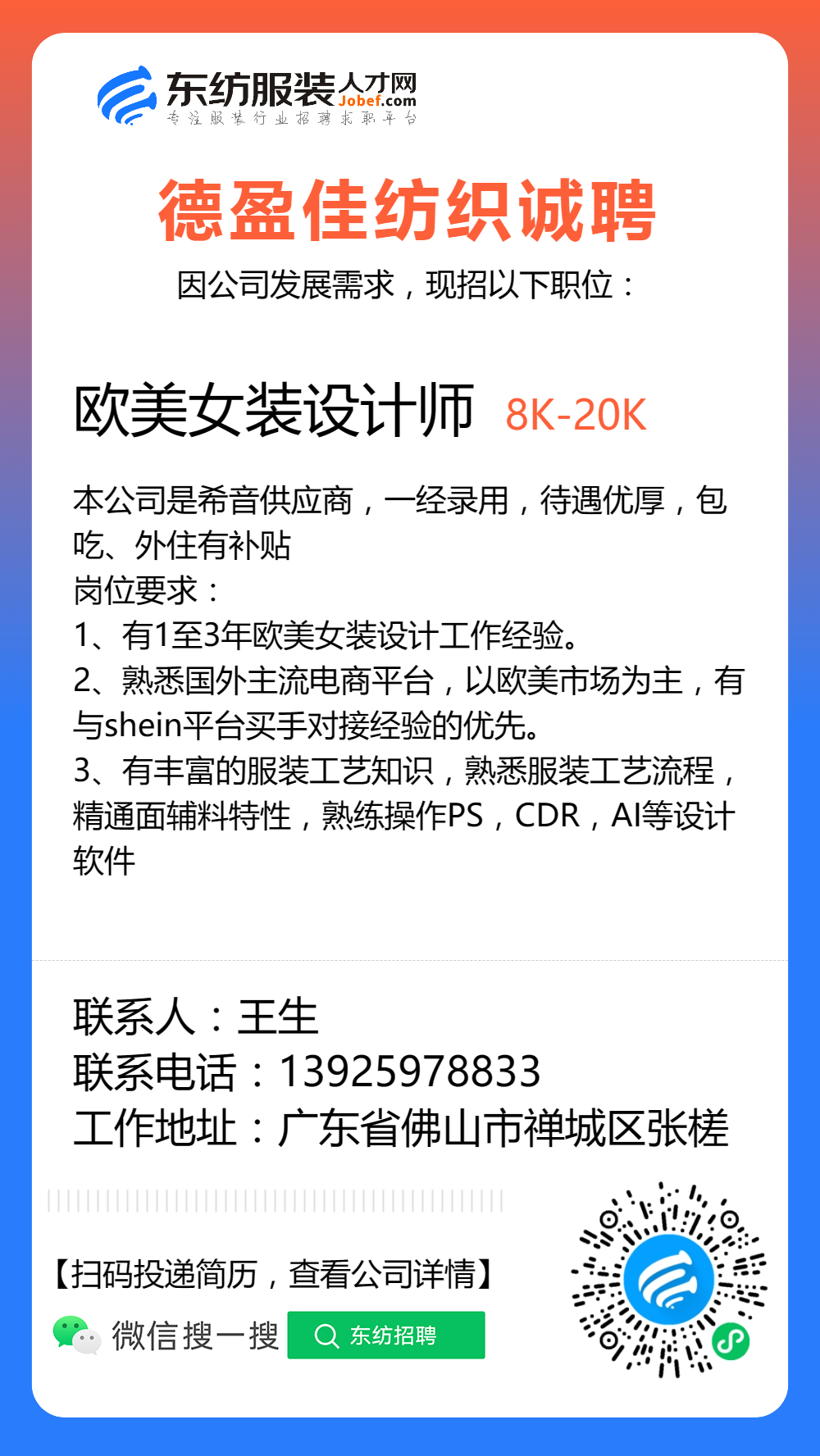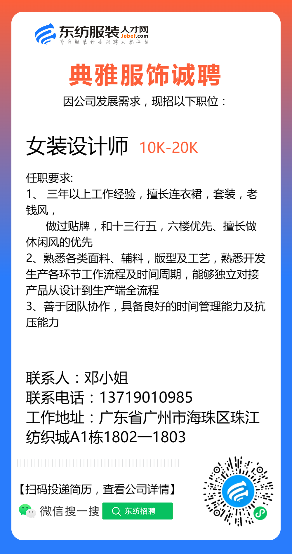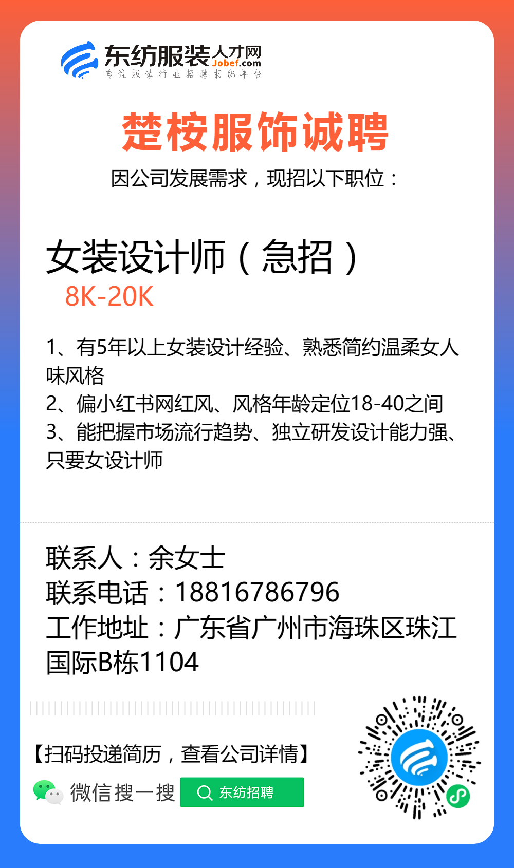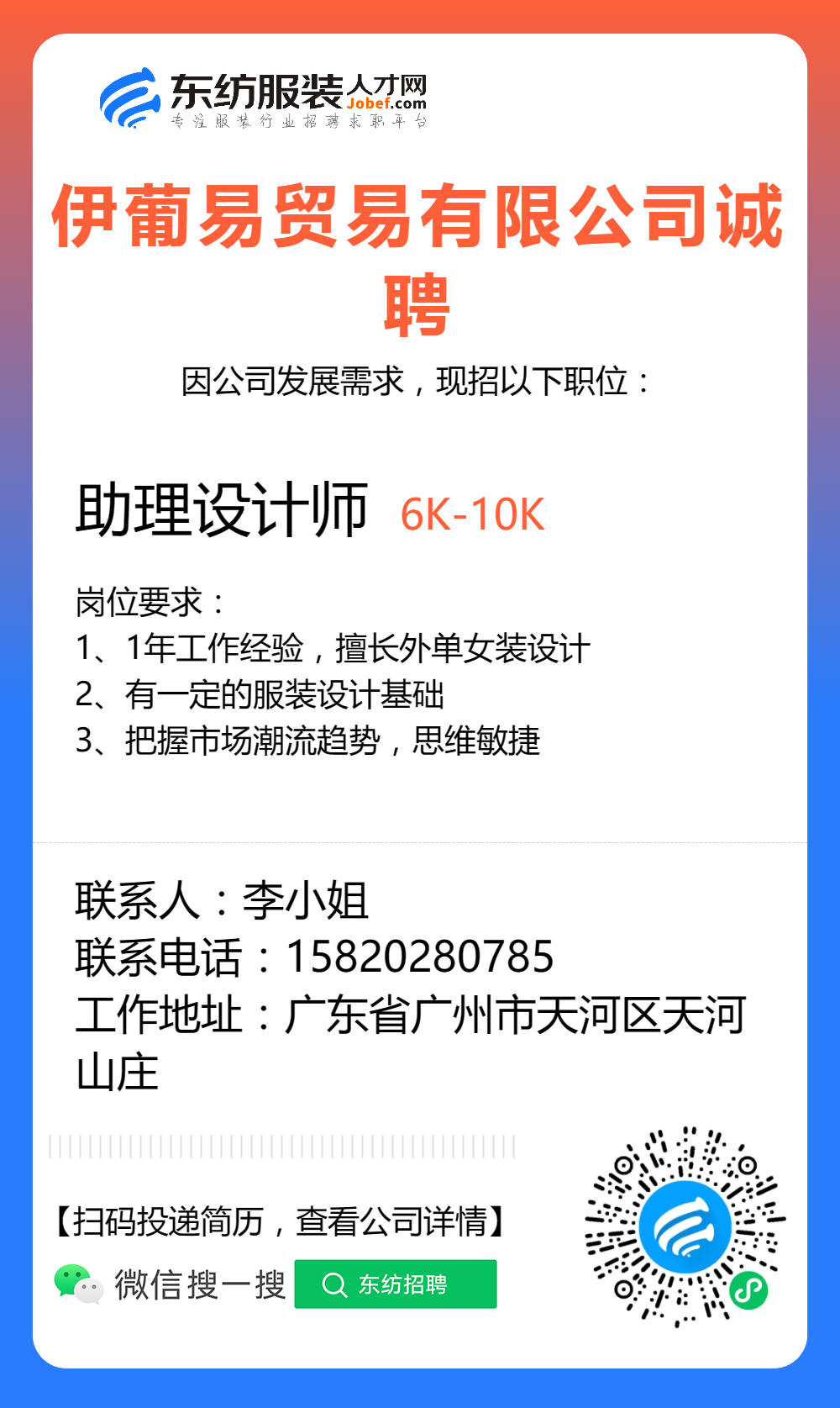 >服装招聘·设计类丨3. 25号,女装设计师、男装设计师、童装设计师、设计助理.....