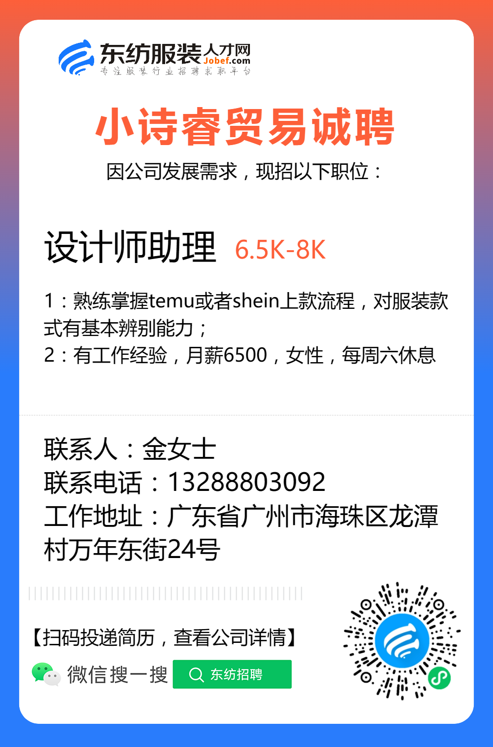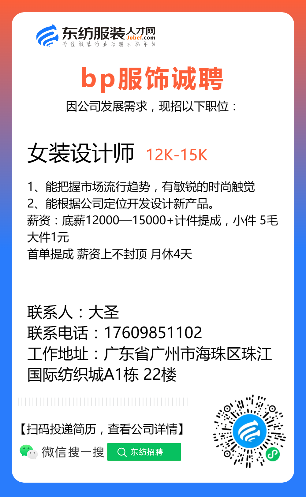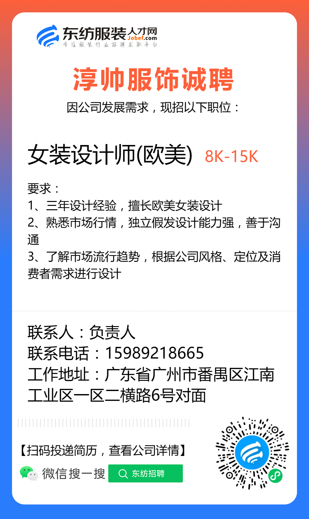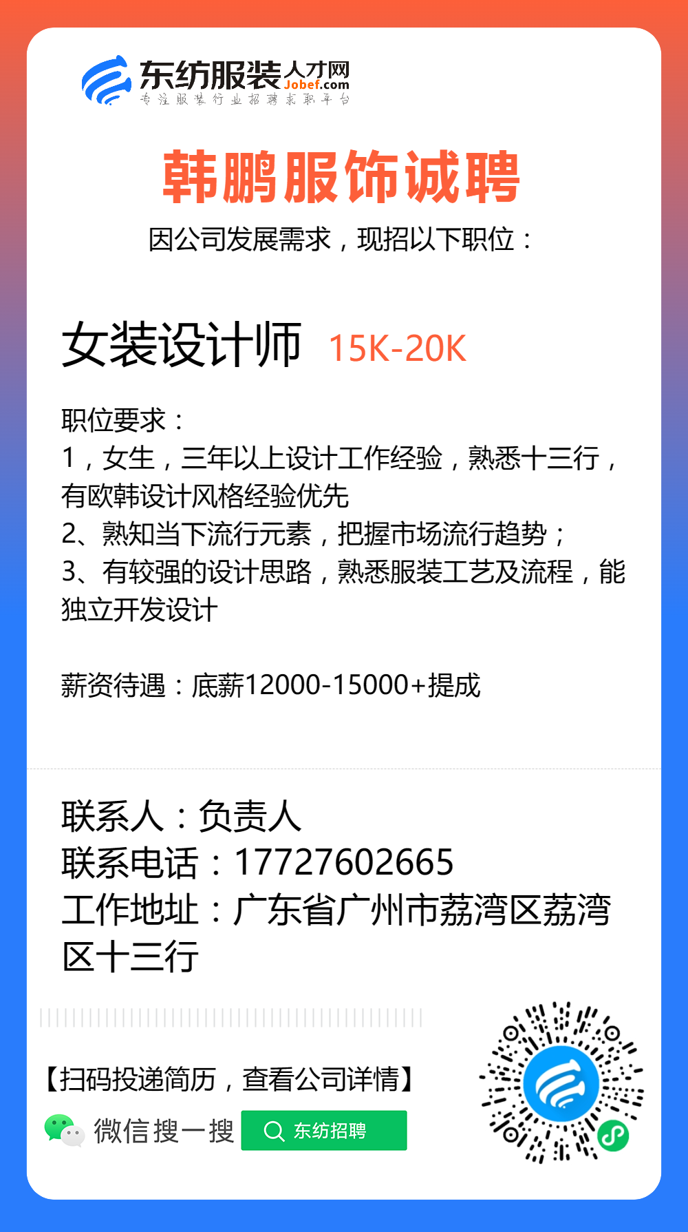 >服装招聘·设计类丨3. 25号,女装设计师、男装设计师、童装设计师、设计助理.....