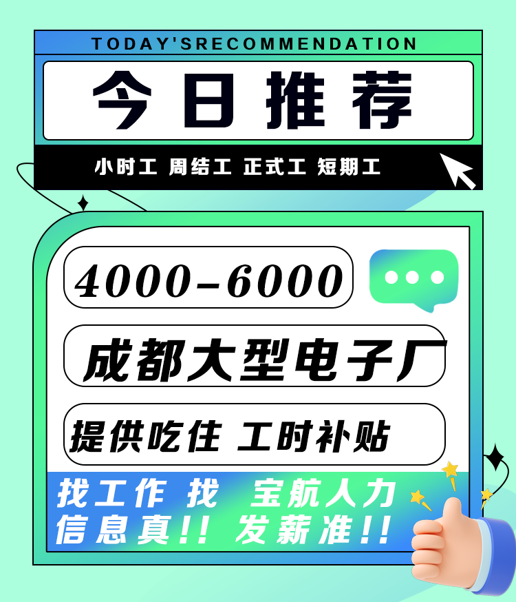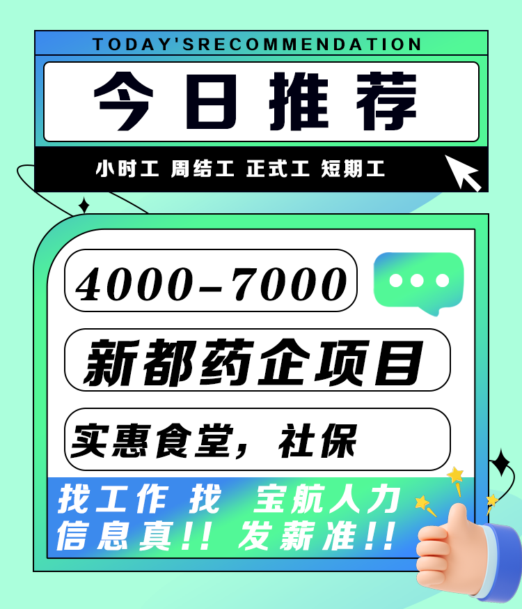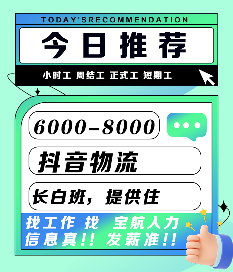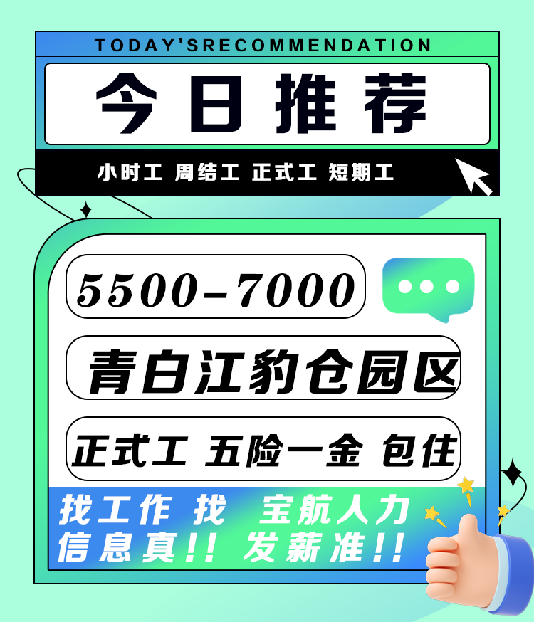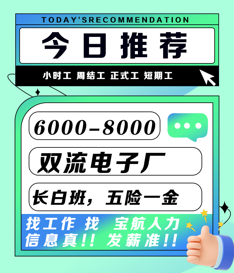 >【今日主推岗位】正式工+小时工+长白班,速速报名!
