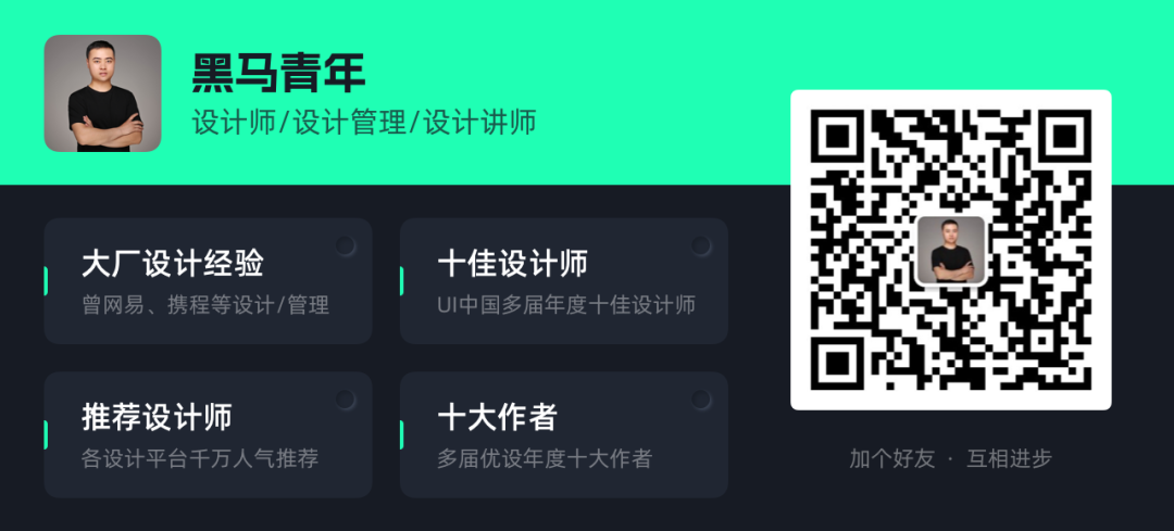 如果你希望自己的设计思考更全面、设计技法更深入、作品输出更专业,或者你想跳槽去更大的公司。欢迎和黑马哥一起交流,我们互相进步。