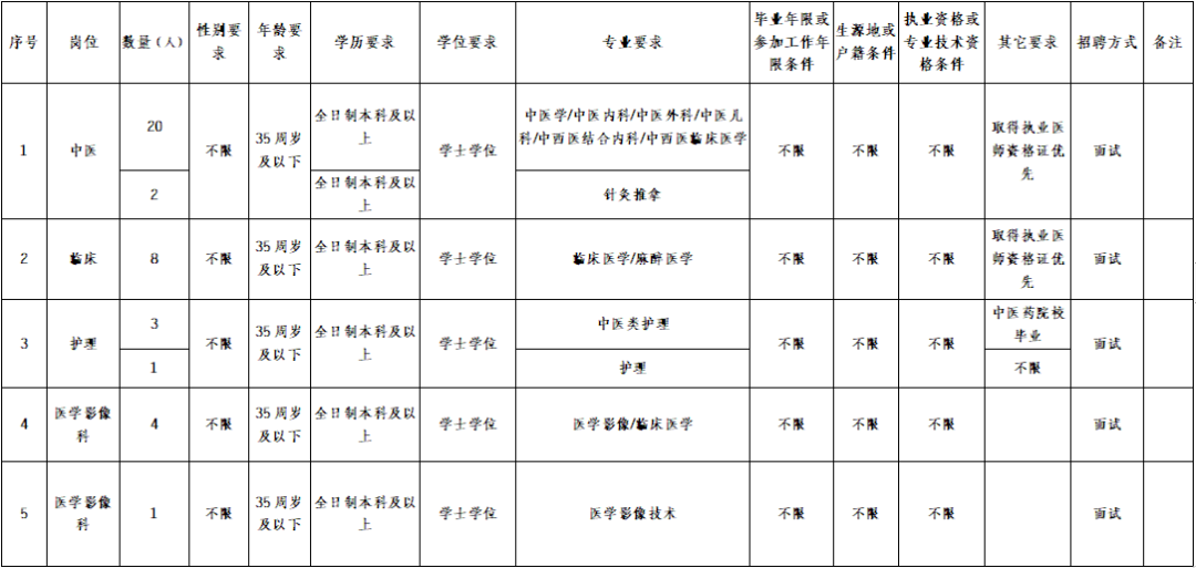 (三)全日制普通高等院校招生计划本科及以上毕业生,取得学士及以上学位证书。具有执业医师资格优先。