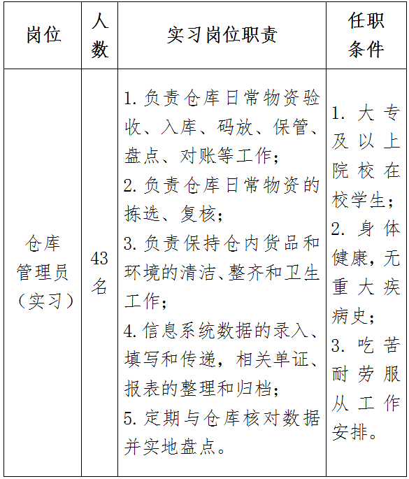 一、实习岗位、实习人数、实习岗位职责及任职条件