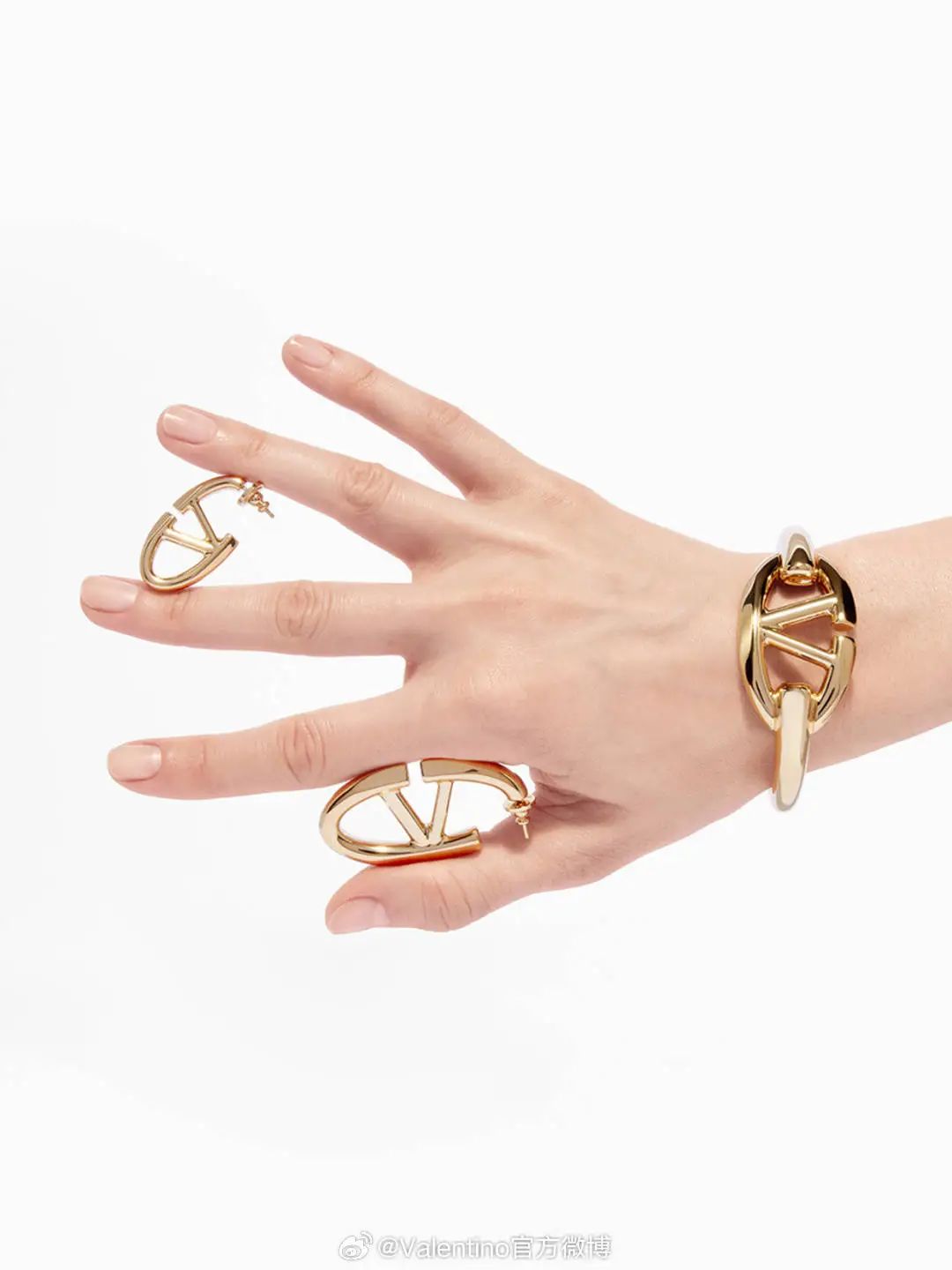 巨大的“V字”Logo不仅成为了装饰图案,还打破定式,既是包袋的手柄,亦可以是瞩目的腕饰、耳饰。