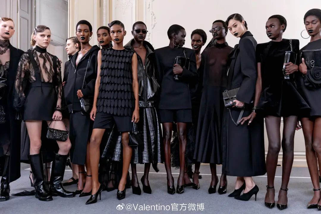 Valentino2024秋冬Le Noir系列中,Pierpaolo Piccioli延续Pink PP的实验,以黑色为画布,重新定义了“Valentino黑”,玫瑰、褶皱、刺绣、蕾丝这些经典的元素,在黑色的映衬下,呈现出了不同的风貌。