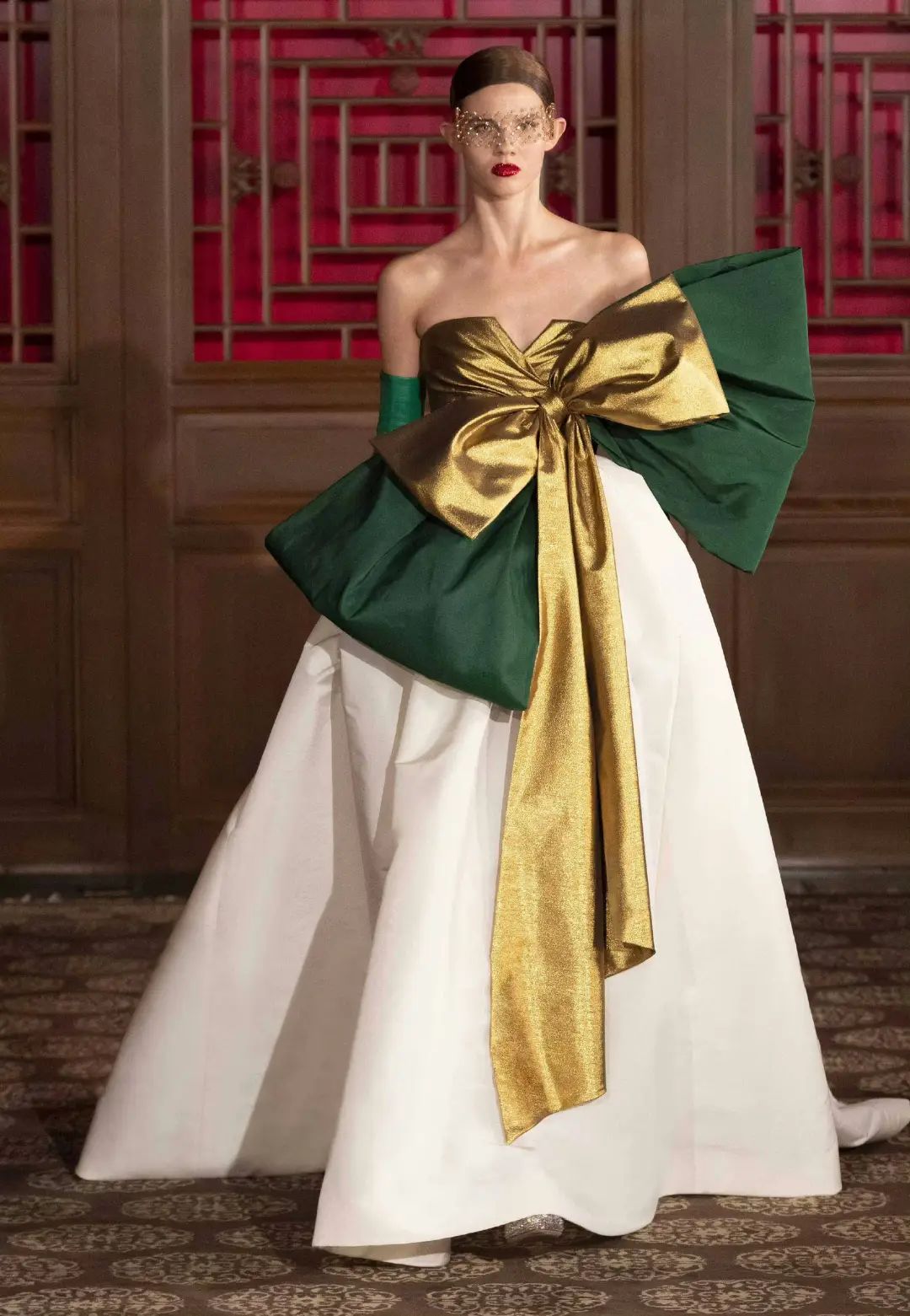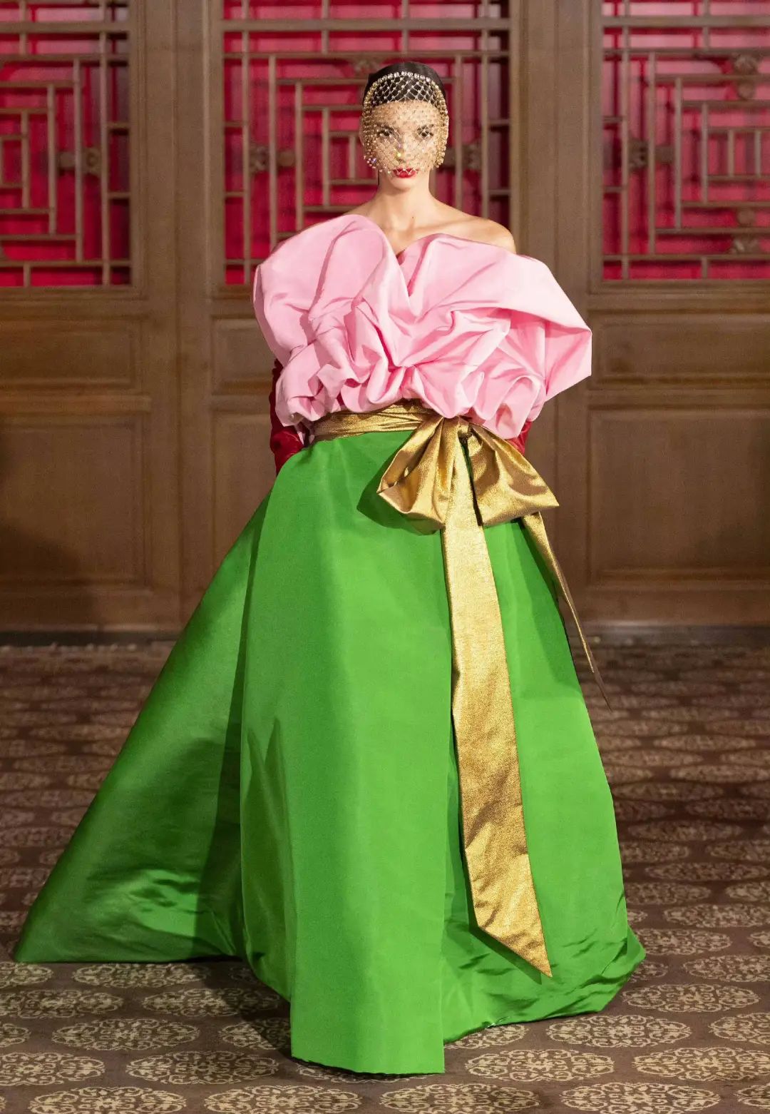 Pierpaolo Piccioli更为重要的贡献,则是他将自己配色天赋发挥得淋漓尽致,在他独立创作的高定系列中,几乎每套设计都通过大胆鲜明的对比色营造出强烈的视觉冲击力。