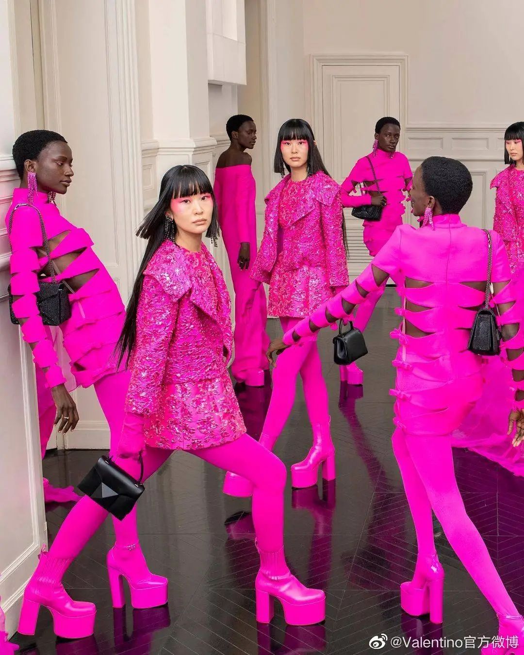 随着Pink PP系列的出现,Valentino芭比粉在2022年形成了刷屏效应,让Valentino在时尚品牌颜色“战场”中有了与蒂芙尼蓝、BV绿、爱马仕橙可比肩的色彩 “武器”。