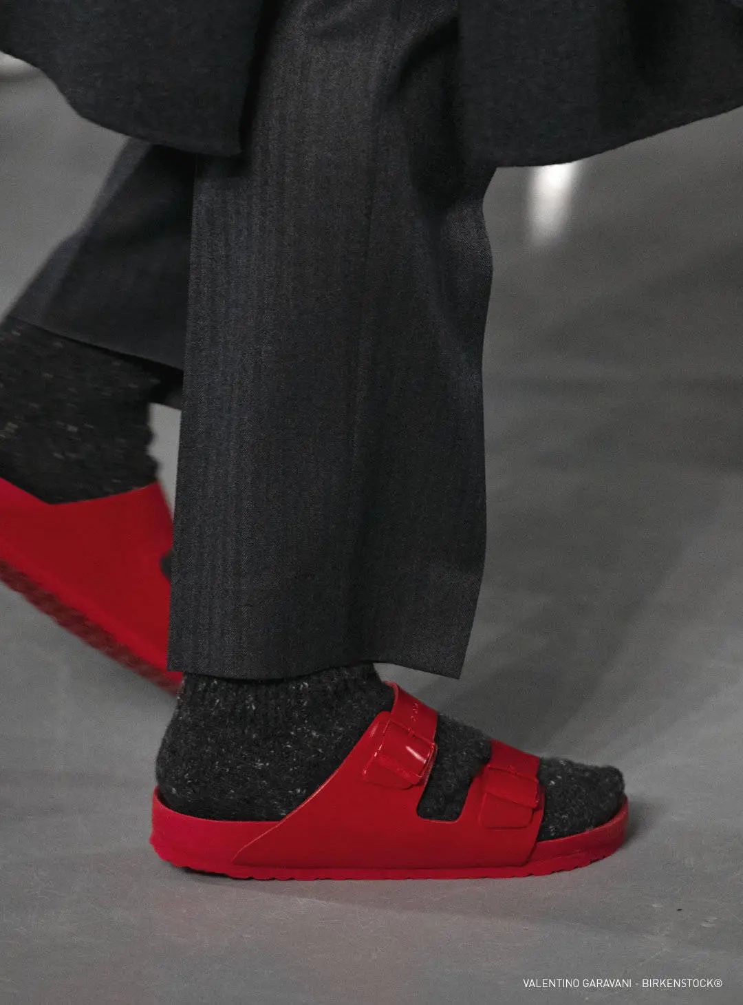 同时,他又极力让高奢品牌贴近生活。2019年,在Pierpaolo Piccioli 的创意主导下,Valentino与鞋履品牌 BIRKENSTOCK 展开了特别合作,推出了联名合作款鞋履。