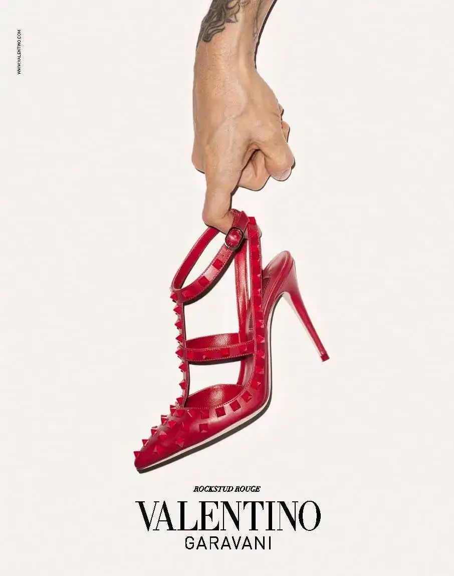 这对老同学组合没让老先生失望,2010年,他们给品牌设计了大爆款“Rockstud系列”,那双铆钉鞋在时装秀上首次亮相便一鸣惊人,成为华伦天奴最具标志性的代表作,热销至今。与Valentino品牌优雅、高贵的传统形象不同,铆钉配饰释放着自由自在的个性气质,当它出现在鞋履、手袋上后,立刻有了一种优雅与狂野并存的气息,它不只是配饰,更是自我宣言,它塑造了Valentino品牌全新的标志性形象。