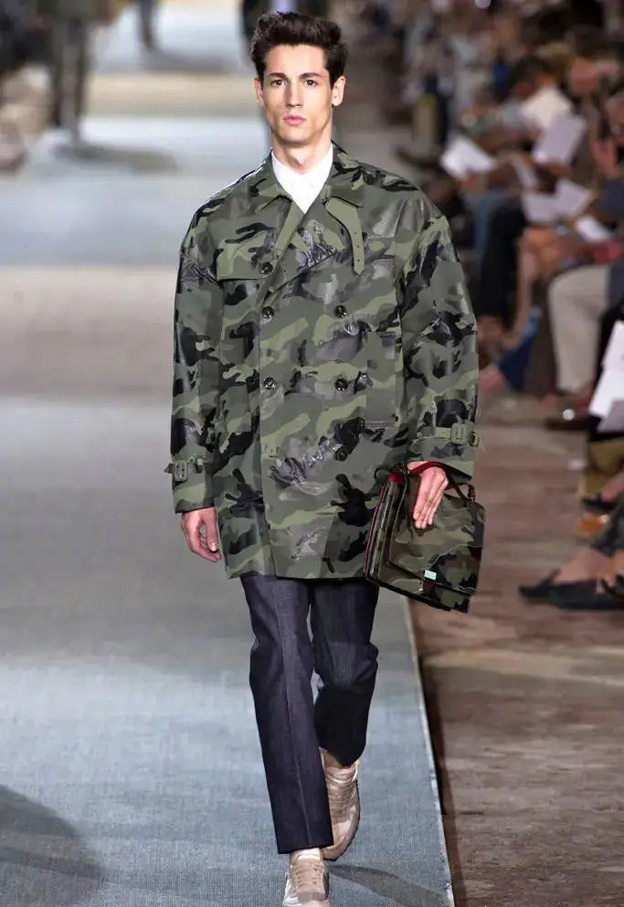 除了铆钉,Pierpaolo Piccioli 和Maria Grazia Chiuri还对Valentino进行了诸多年轻化改造,比如在2013 春夏男装系列中加入了大量迷彩元素,让经典单品变得年轻、街头。