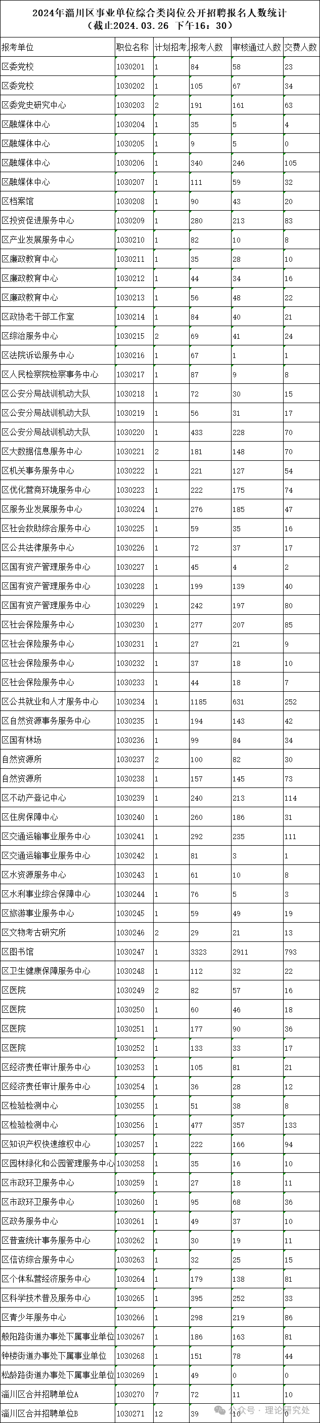 >2024年淄川区事业单位综合类岗位公开招聘报名人数统计(截止2024.03.26 下午16:30)