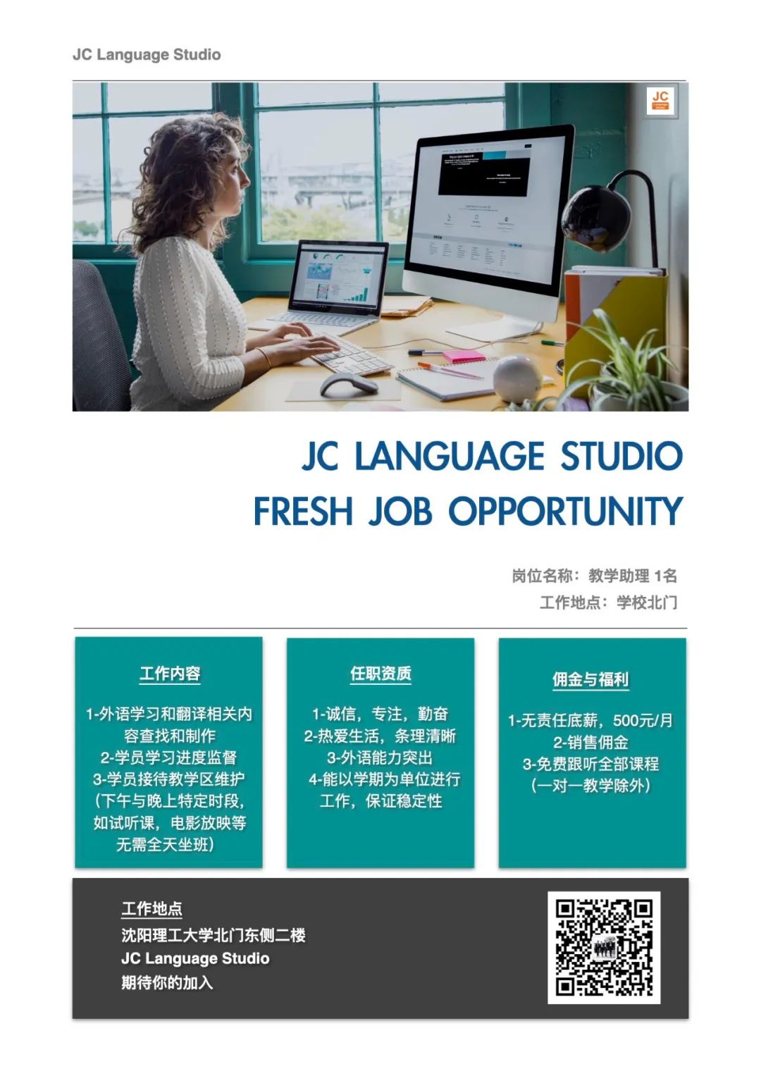 JC 外语工作室诚聘志同道合的小伙伴们,具体招聘信息如下: