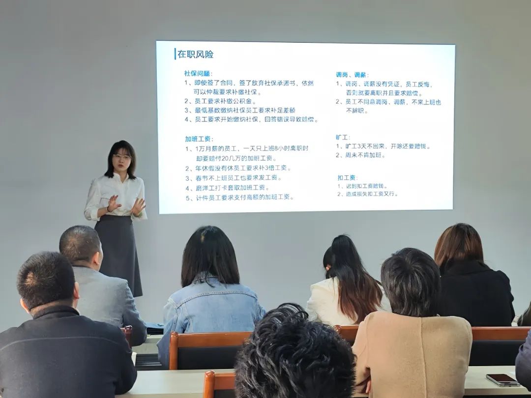 近年来,劳动仲裁案件数量飙升,动辄赔偿几十万。哪怕是企业签了劳动合同、按时发放了工资却还是无法避免劳动仲裁的巨额赔款。昨天上午,我所资深劳动关系管理师,陈文瑶律师,为顾问单位开展企业用工合规训练营专项培训,并且提供了全流程的配套文本,手把手教企业落地。