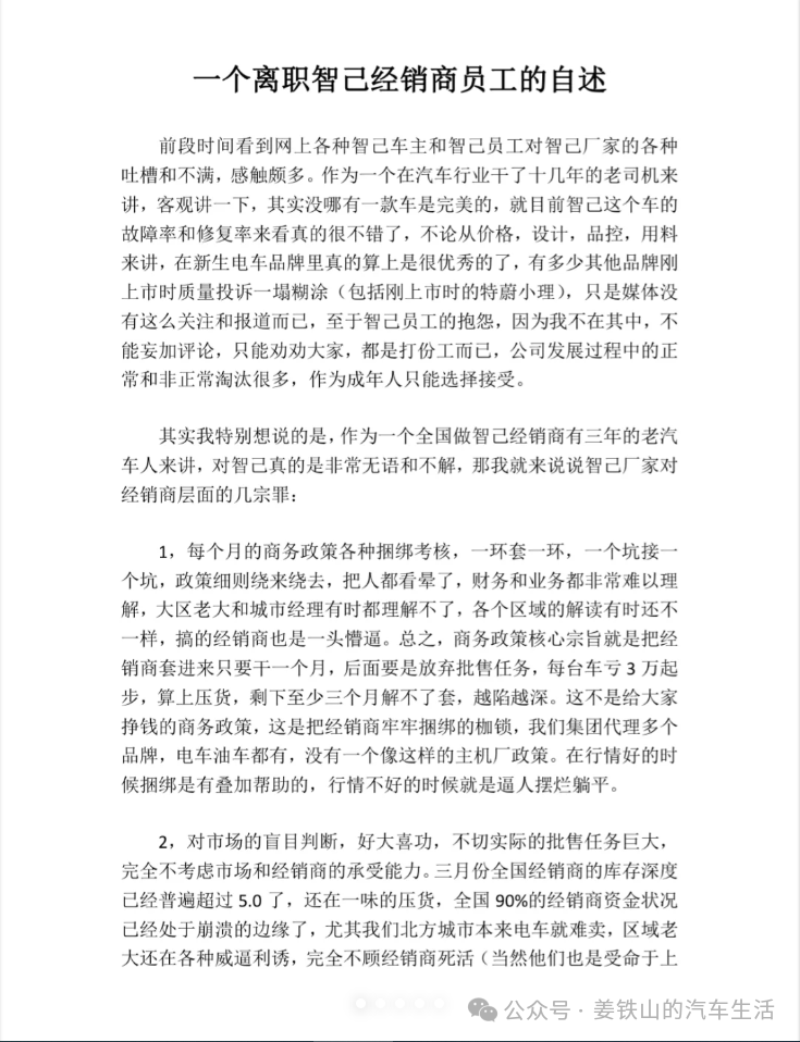 离职员工爆上汽智己商务政策混乱、压榨经销商