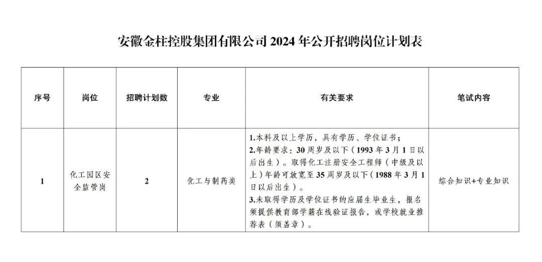 因发展需要,安徽金柱控股集团有限公司面向社会公开招聘工作人员。现将有关事项公告如下: