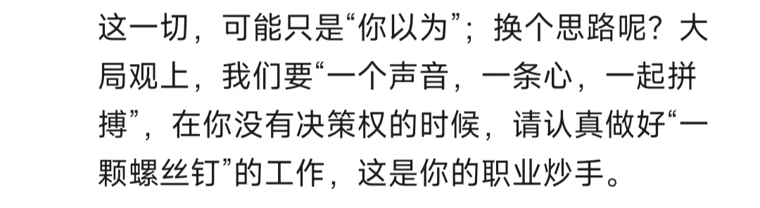 在你没有决策权的时候,一定要认真做好自己的工作,做好一颗螺丝钉。