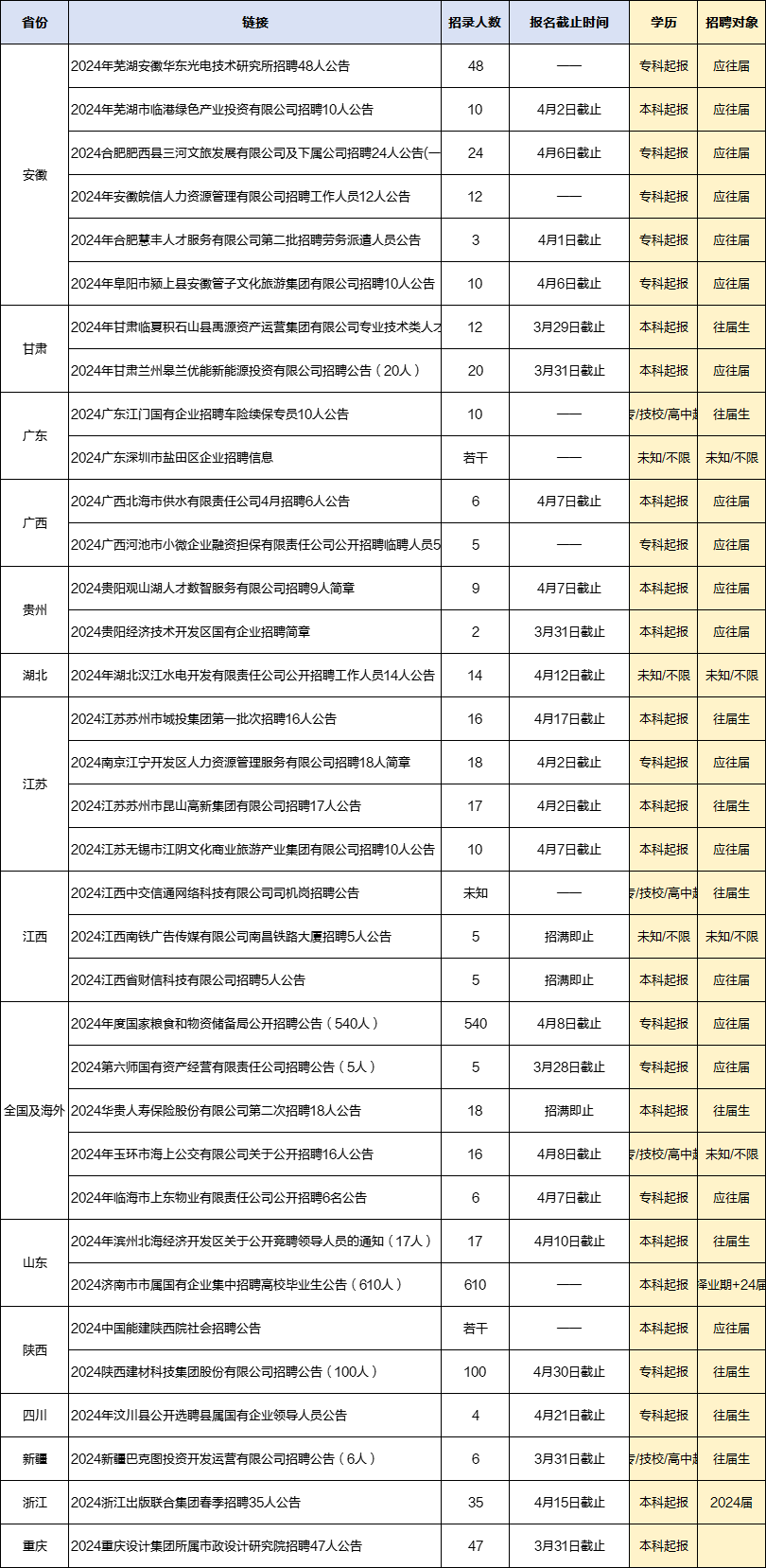 近期国企招聘汇总来啦!