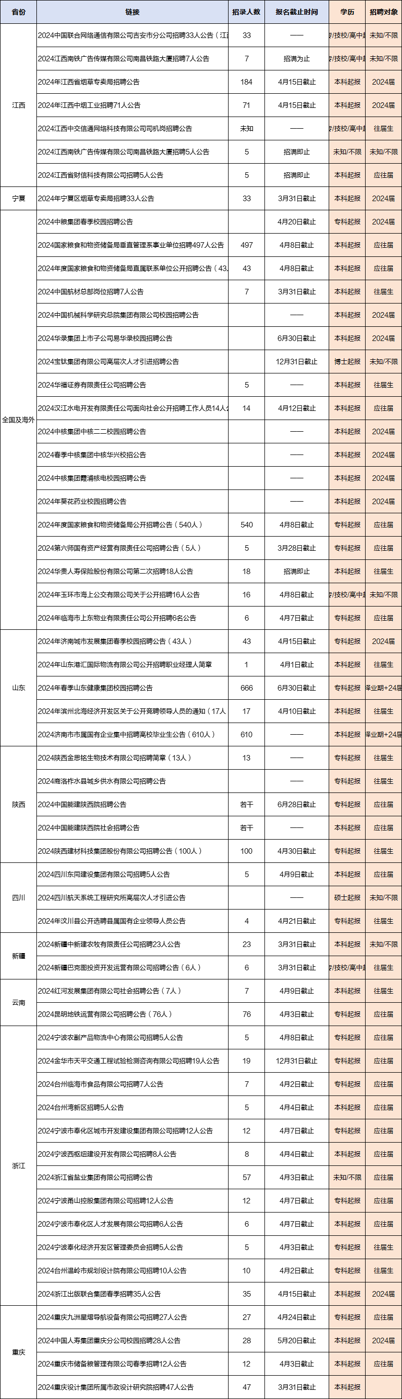 近期国企招聘汇总来啦!