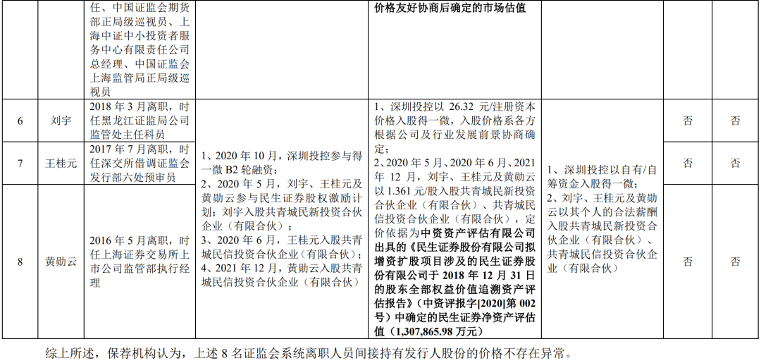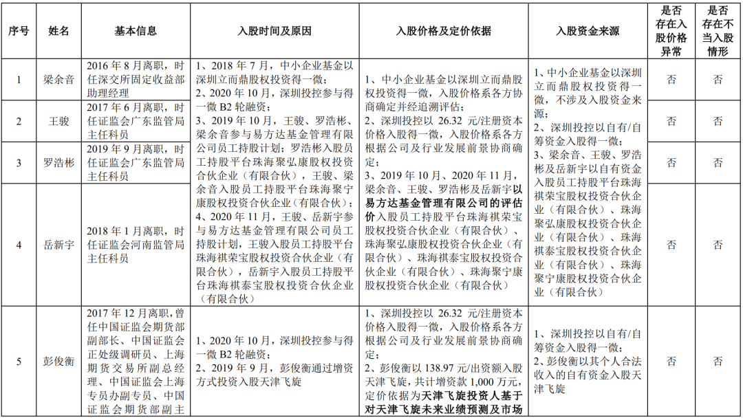 据招股书披露上述8名证监会离职人员因为是通过基金入股的项目,所以并没有被第一时间披露出来,直至对外披露二轮问询回复意见,才被“穿透”出基金幕后有证监会离职人员,这8名间接股东中,有不少是通过得一微电子2018年以后的A、B轮融资,获得公司股份,关键是,8人通过中小企业基金或深圳投控间接持有得一微的股份数均不足1股,可能得一微也并没有审慎投资机构的背景,另外就是保荐机构可能觉得这不足1股问题也不大,结果就是从第二轮问询回复后就没有了新的动静,直到今天撤材料。