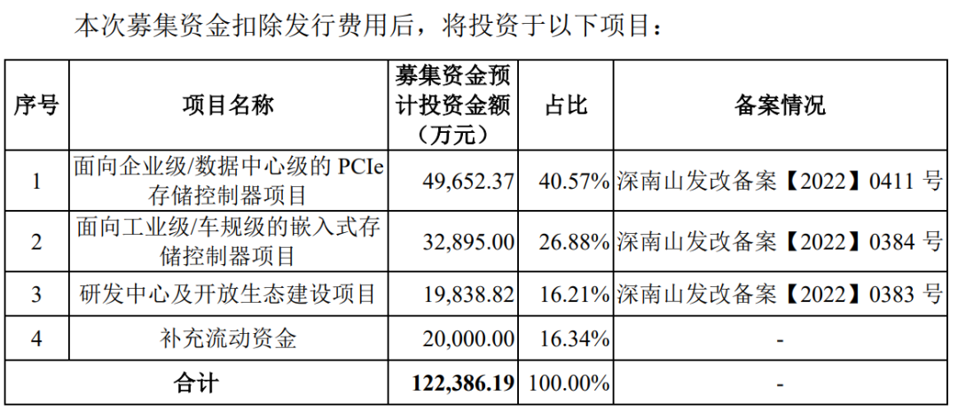 得一微电子拟IPO募资12.23亿元,投用于三大项目:面向企业级/数据中心级的PCIe存储控制器项目、面向工业级/车规级的嵌入式存储控制器项目、研发中心及开放生态建设项目,另有2亿元用于补充流动资金。