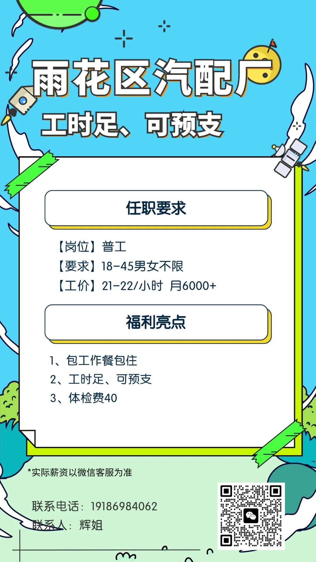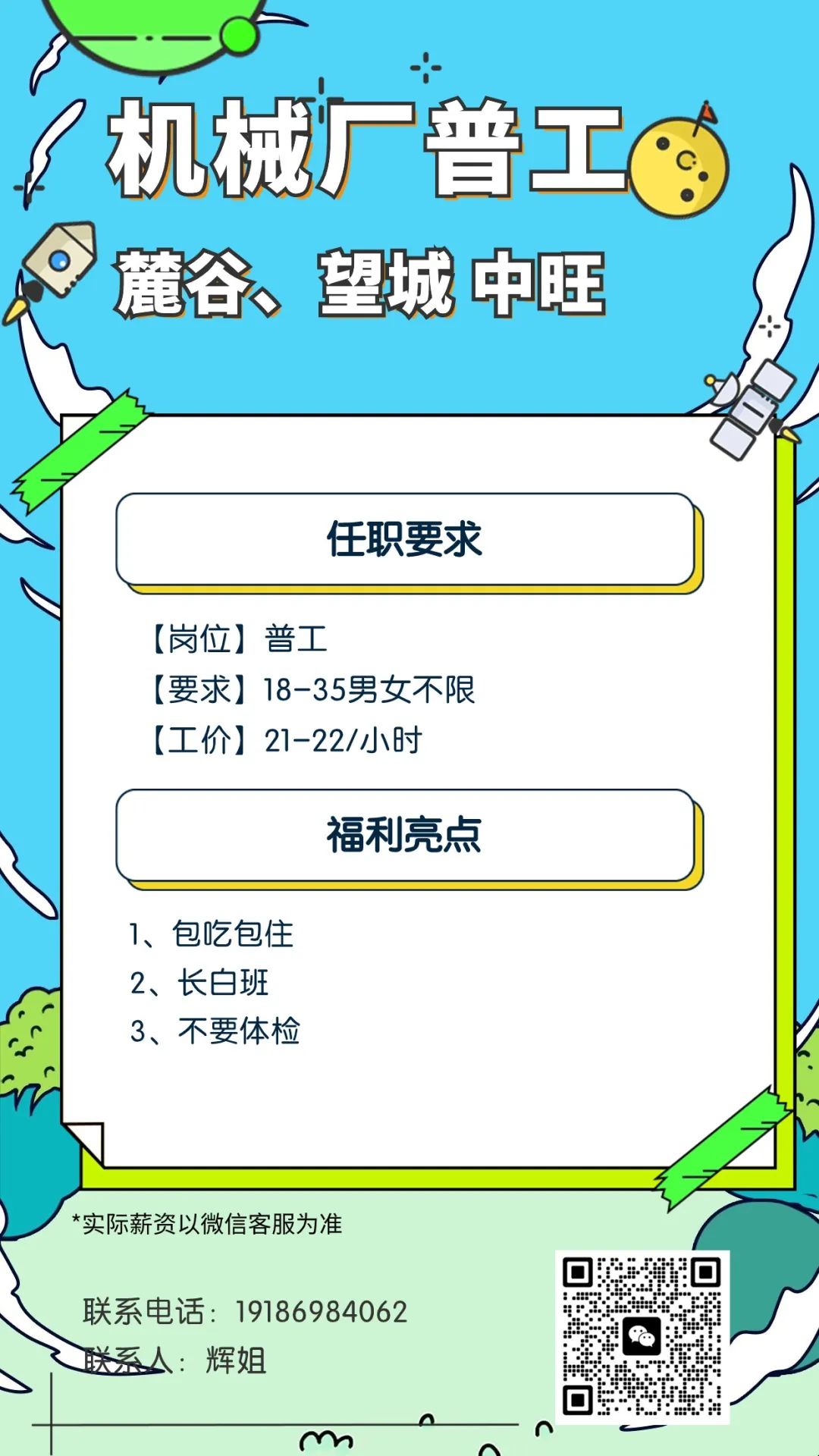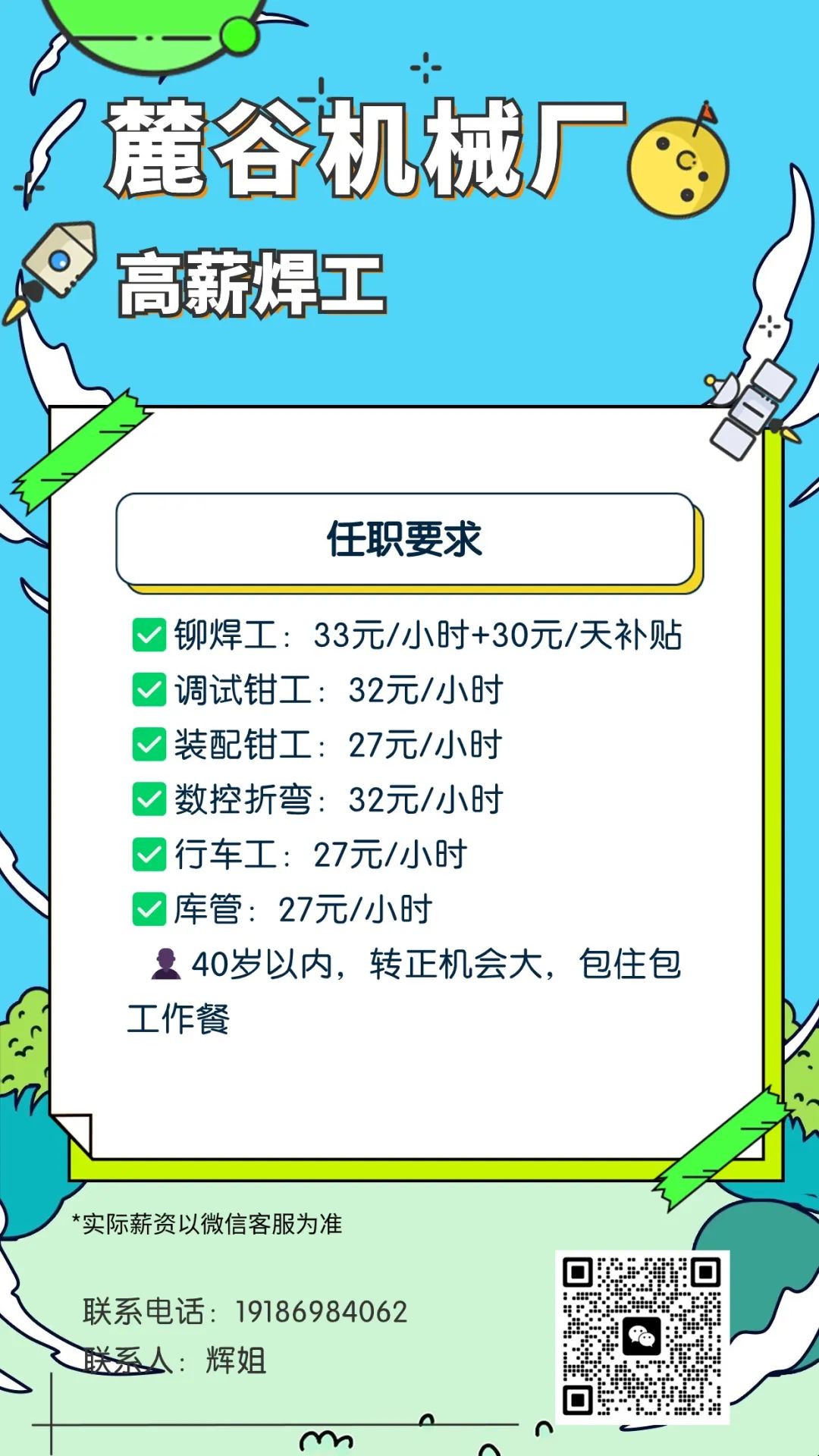 温馨提示:因工价实时变动且公众号无法实时更改,公众号工价仅供参考,具体以招聘顾问提供的信息为准!更多高薪福利欢迎联系招聘顾问~