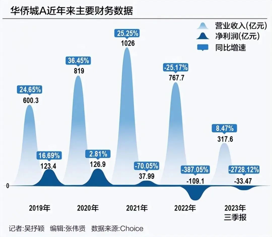 3月30日,华侨城A(000069.SZ)披露2023年年报。数据显示,2023年公司实现营业收入557.44亿元,同比降低27.39%。