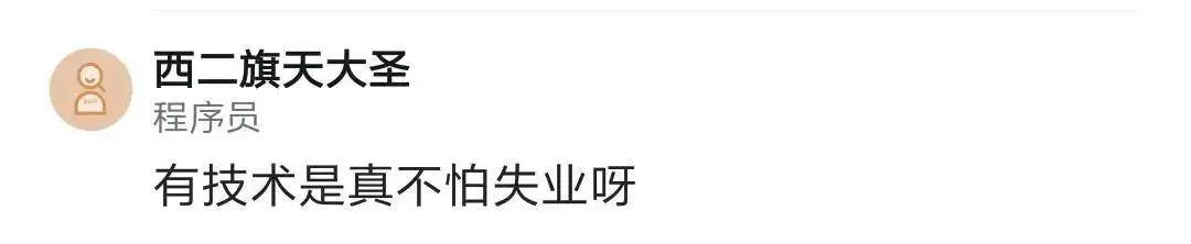 真有技术的人,确实不怕失业,家里用的任何工具,只要坏了,都需要有人去维修。在哪一行干久了,经验丰富,有客户,一样会有生意做。技术是很重要的,要去研究市场的需求,哪些技术值钱,就研究什么技术。