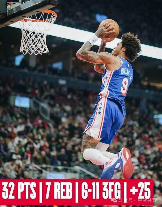 可这场比赛没有马克西,纳斯给了乌布雷第一大核的球权,他全场比赛37分钟,22中10,三分11中6,拿下32分7篮板3助攻2抢断2盖帽,命中率45.5%,三分命中率54.5%,他32分创造赛季新高,6个赛季也平赛季新高。