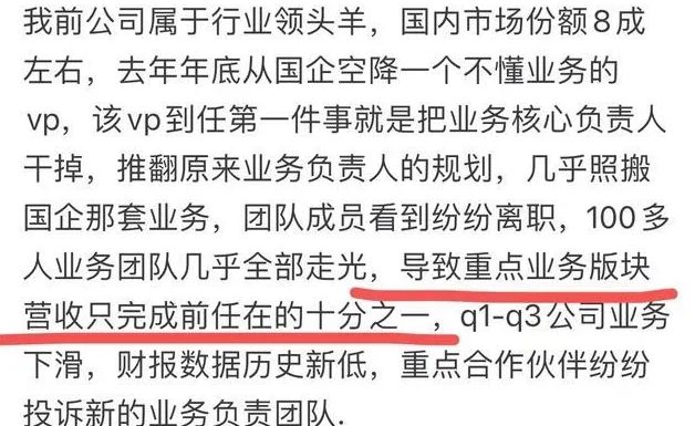 空降领导?唉,听说了都头疼。最讨厌的就是那些一意孤行的家伙,他们的决策可能会让公司付出沉重的代价。糟糕的是,等到意识到问题时,可能已经来不及了。哎呀,影响真的太大了!