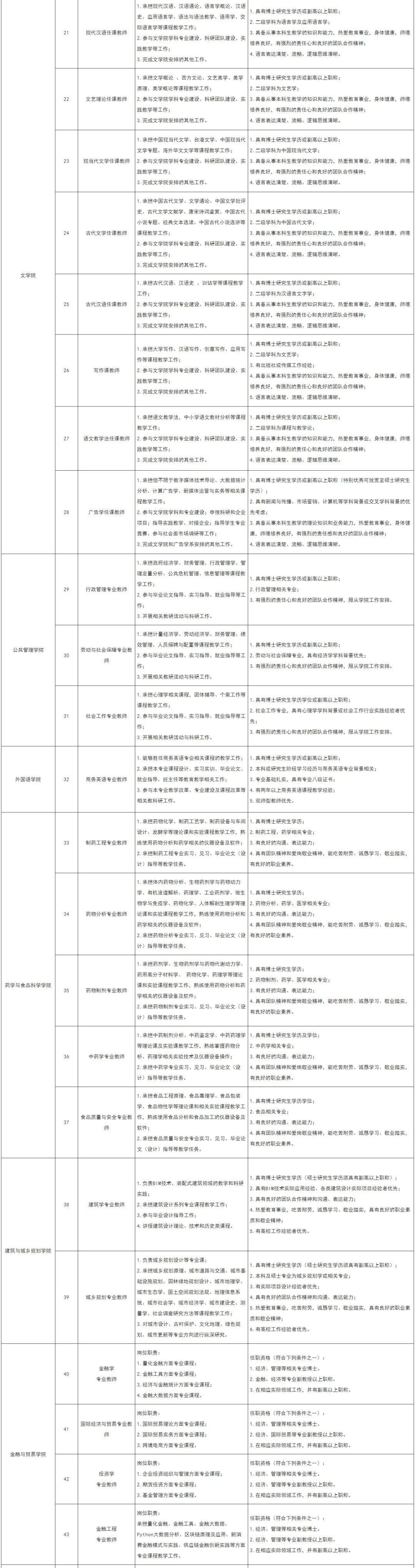 珠海科技学院(原吉林大学珠海学院)成立于2004年5月18日,2011年获批学士学位授予单位,先后与吉林大学、华南师范大学开展联合培养硕士研究生合作,2021年获批广东省硕士学位授予立项建设单位。建校19年来,学校共为社会输送近10万名本科生、160名联合培养硕士研究生,已发展成为全国有影响力、办学特色鲜明的民办本科高校,荣获“广东省文明校园”“中国产学研合作示范基地”“广东省党建工作示范高校”“广东省大学生创新创业教育示范学校”等荣誉,被认定为首批国家级创新创业学院建设单位,获工信部首批专精特新产业学院建设立项。转设前连续7年居于国内各大同类院校排行榜榜首,转设后以优异成绩居于软科中国大学排名民办高校排行榜第二,连续三年蝉联广东省第一名,连续三年在广东省民办高校年度检查中获评“优秀”。学校围绕珠海新兴产业发展需求,对标粤港澳大湾区建设、服务国家战略,持续优化学科专业布局,现设25个二级学院、66个本科专业,涵盖经济学、法学、文学、理学、工学、医学、管理学、艺术学、教育学9大学科门类,拥有省级重点学科3个、市级优势学科3个,拥有联合国世界旅游组织旅游教育质量认证项目2个、国家级一流本科专业建设点3个、省级一流本科专业建设点8个、省级特色专业12个。学校实施人才强校战略,不断优化师资队伍引进机制和培养环境,组建了一支教学经验丰富、研发能力较强、德才兼备、勤奋敬业的教师队伍,其中二级教授21名、博士生导师62名,省级教学名师13名。学校不断加强名师建设,现有广东省南粤优秀教师6名、广东省南粤优秀教育工作者1名、广东省师德先进个人1名、广东省三八红旗手1名、广东省高等学校教学名师奖1名、广东省民办教育优秀校长1名、广东省民办教育优秀教师2名、广东省民办教育优秀教育工作者1名。30名教师获得广东省高等学校中青年教师国内访问学者项目资助,2名教师入选广东省优秀青年教师培养计划。2021年,学校获批设立广东省博士工作站,在人才队伍等建设方面取得标志性突破。学校地处粤港澳大湾区,坐落于经济特区之一的广东省珠海市。校园由闻名世界的设计悉尼奥运会场馆的澳大利亚PTW公司按照澳洲滨海建筑风格整体规划设计,环境优雅、椰风海韵、空气清新、风光绮丽,是莘莘学子读书学习的理想园地,被誉为国内最美的大学校园之一。学校以建设一流创新性、应用型大学为目标,立足湾区,服务广东,面向区域经济社会发展需求,以本科教育为根本,积极发展研究生教育,培养思想道德品质良好、专业基础扎实、富有创新精神、实践能力强、综合素质好的高层次应用型人才。2、思想政治素质好,遵纪守法,诚实守信,无违法违纪行为和不良从业记录;具有良好的品行和职业道德,遵守公共秩序,尊重社会公德;3、忠诚教育事业,恪守学术规范,认同学校,自觉维护学校声誉,遵守学校规章制度;敬业爱岗,严谨治学,团结合作,关心集体,爱护学生,身心健康。2、具备应聘岗位所需的专业或技能条件,适应岗位要求的身心条件;具备较强的教学和科研能力、深厚扎实的专业基础知识、以及较强的口头表达和教学组织能力。有高校教学经验、具有高校教师资格证者优先考虑;在应聘岗位相关领域具有较深的造诣,教学经验丰富,教学效果突出,学术思想活跃,科研成果突出者优先考虑。1、曾因犯罪受过刑事处罚的人员或曾被开除公职的人员;2、尚未解除党纪、行政处分或正在接受纪律审查的人员;3、涉嫌违法犯罪正在接受司法调查尚未做出结论的人员;4、在各级各类事业单位招录(聘)考试、体检或考察中存在违纪行为的人员;(一)教职工的聘用采取合同制,薪酬待遇按学校标准执行,特优人才可采取“一人一策”的办法由双方协商确定引进待遇,符合条件的博士年薪最高可达28万。