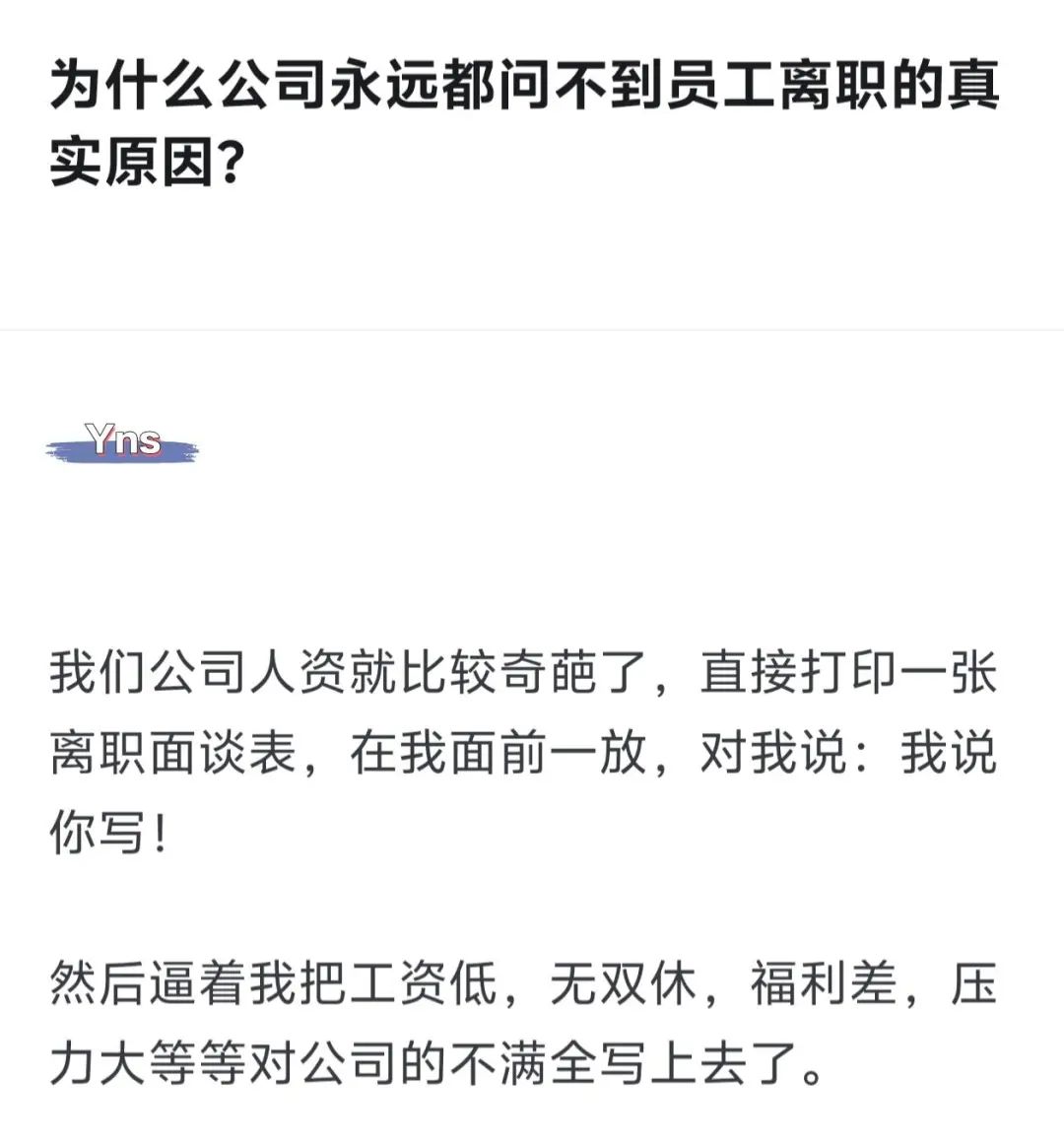 >公司永远问不到离职原因?