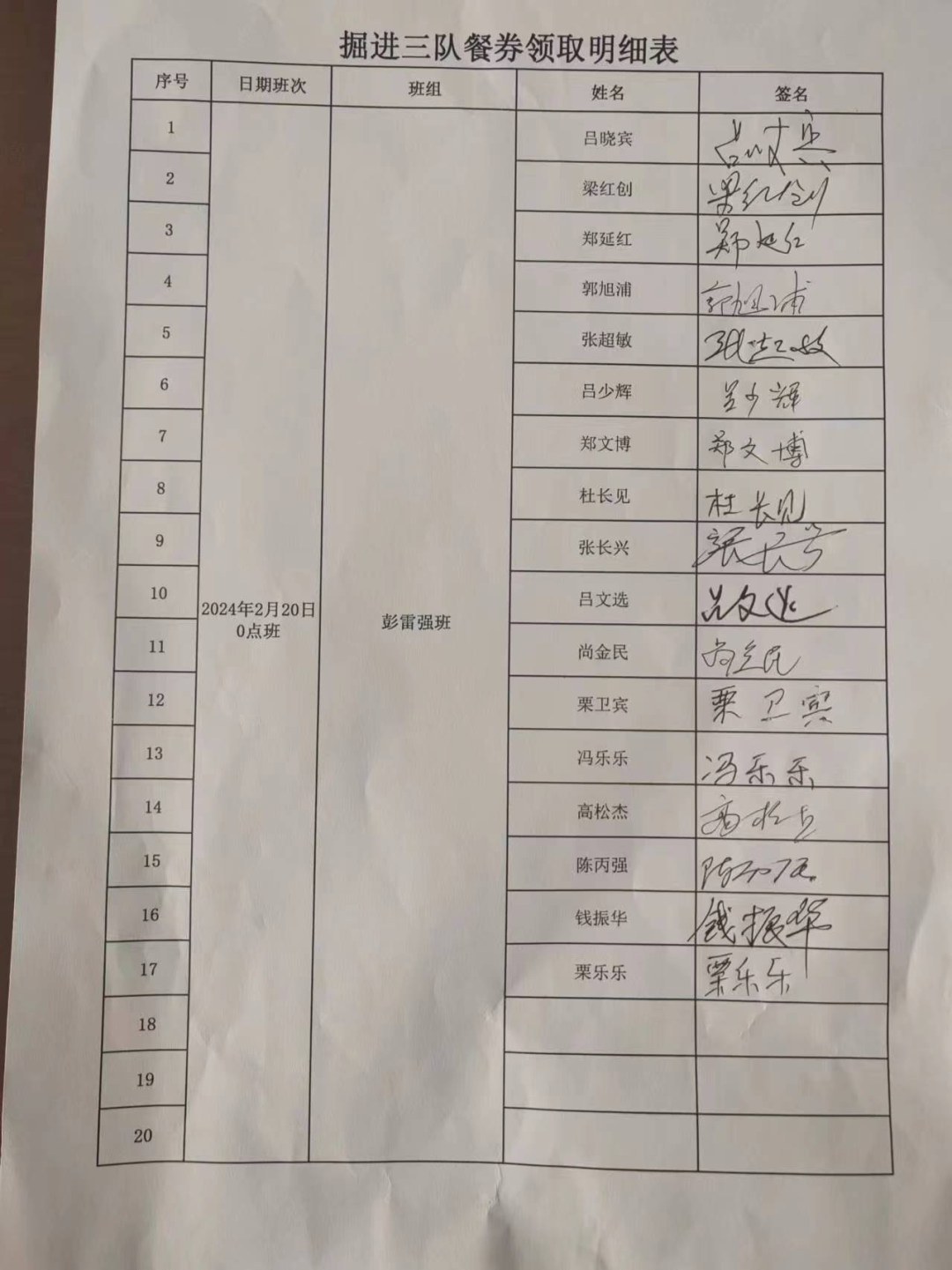 “大家昨天的餐券都领了吧!下班后可以直接到饭卡充值处充值,这是矿井对我们抢抓工程进度的奖励,希望大家再接再厉,争取加快12105上顺槽掘进。”近日,在班前会上丰阳煤矿掘进三队副队长高代丰说。
