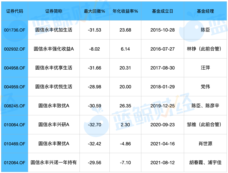 前脚刚过完十周岁生日,后脚就迎来“投研扛把子”离职。4月3日,圆信永丰公告,公司副总经理兼首席投资官、基金经理范妍因个人职业发展离任,同时卸任8只基金的基金经理,离任日期为2024年4月3日。其实,早在今年3月初,市场便传出范妍离职传闻,原因是个人发展与公司的规模诉求出现矛盾。据悉,公司新上任的总经理高健要求范妍增加路演频次、接手二级债基等,而范妍自身管理规模已经较大,想要专心投研,于是产生分歧。彼时,圆信永丰表示范妍正常履职,公司投资运营一切正常。3月26日,钒钛股份公告范妍当天还参与了该公司的调研活动,似乎平息了外界的离职传闻。不过如今圆信永丰的一纸离职公告,终于让范妍离职的靴子落地。“我已经全部赎回。”对于范妍离职,多位投资者在股吧中如是写道。范妍离职之所以受到关注,原因有两点,第一,在管产品历史业绩出色,持有体验感好,离职或影响产品后续业绩;第二,管有规模占公司总规模的44%,且专注主动权益类产品,离职或影响公司的投研体系。2014年1月,圆信永丰基金成立,范妍同年加入这家初创公司。2015年,范妍开始担任基金经理。绩而优则仕,2020年范妍出任公司副总经理。离职前,范妍管有8只产品,除圆信永丰强化收益这只债基外,其他皆为主动权益基金。在业绩层面,在管的8只产品业绩均处于同类前50%。其中,圆信永丰聚优、圆信永丰兴诺一年持有、圆信永丰强化收益任职回报为负,这三只产品皆发行于2021年市场即将走熊之时。其余5只在管产品皆录得正收益,其中4只的年化回报都超过了10%。以管理时间最久、规模最大的是圆信永丰优加生活为例,2015年10月至今,产品回报率为188.84%,年化回报为13.39%(业绩比较基准的年化回报为0.44%),同类排名前4%。2020年,该基金收益曾达到87.89%,在2023年权益弱市中,也录得0.36%的正回报。范妍秉承自上而下的风格,倾向于在景气度高的行业中选择优秀的公司。范妍的行业配置和个股配置都相对分散,抗震效果较好。以圆信永丰优加生活为例,2023年底前十大重仓权重占比仅22.11%,第一大重仓股思源电气占比也仅2.84%。持仓分散的同时,该产品的换手率仅有38.85%。那么,范妍离职后,这8只产品的接替者是谁,投研能力又如何?以范妍代表作圆信永丰优加生活为例,公司研究部副总监(主持工作)陈臣接管了这只产品,陈臣有14年证券从业经验,近4年基金管理经验,专注主动权益。目前,陈臣管有两只主动权益类基金:圆信永丰优选价值、圆信永丰双红利,不过陈臣在这两只产品中的表现并不算好。2021年11月,陈臣接管圆信永丰双红利,以完整的交易年来看,2022年该产品收益为-22.01%,跑输-15.20%的业绩基准;2023年收益为-19.61%,跑输-7.37%的业绩比较基准。而另一只产品,圆信永丰优选价值A,2020年至2021年5月由陈臣与范妍合管,期间业绩为正跑赢基准,2022年、2023年由陈臣单独管理,这两年跑输基准皆超6%。除此,陈臣、陈彦辛(此前陈彦辛是食品饮料、商贸零售的研究员)接管了圆信永丰致优;胡春霞(权益投资总监)、浦宇佳(此前是通信、计算机板块的研究员)接任圆信永丰兴诺;汪萍接任圆信永丰优享生活;党伟接管圆信永丰优悦生活;肖世源接管圆信永丰聚优。而此前范妍和林铮合管的圆信永丰强化收益,交由林铮单独管理;范妍与邹维合管的圆信永丰兴研,交由邹维单独管理。可以发现,本次接替者的选拔非常分散,8只产品分散给9位(含此前两位合管转独管)基金经理管理。Wind显示,目前圆信永丰共有12位基金经理,除3位无主动权益投研经验外的基金经理外,其余9位皆接管了范妍的产品。值得注意的是,9位接管人中,2位刚从研究员晋升为基金经理,本次接任是其首次担任基金经理。可以见得范妍的离职,圆信永丰在接替者的安排上,已使出洪荒之力。