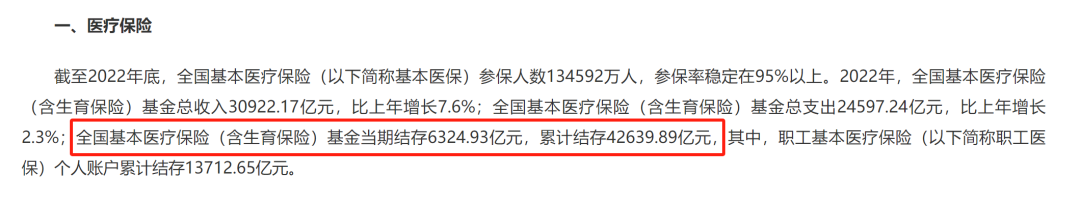 另外,国家医疗保障局的统计公报显示,全国基本医疗保险(含生育保险)基金当期结存6324.93亿元,累计结存42639.89亿元。