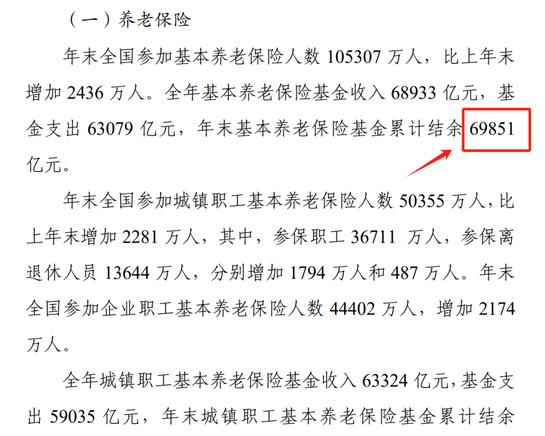 根据人社部的统计公报,2022年,全国基本养老保险结余5880亿元,累计结余高达6.98万亿。
