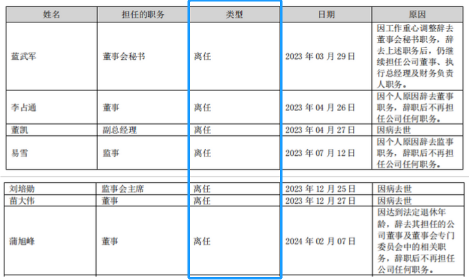 2023年年报显示,2023年3月29日-2024年2月7日,红日药业的副总经理、监事会主席、董事、董事会秘书等7人离任。