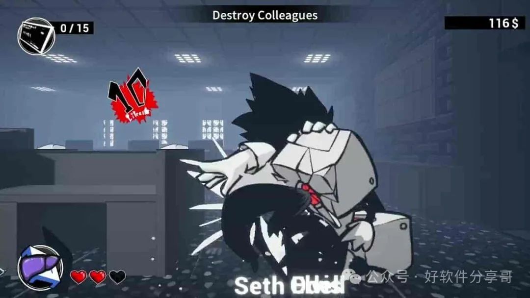 故事开始于一个平凡的早晨,您像往常一样到达公司,却发现所有同事都认为您即将辞职。他们将你视为公司的叛徒并联合起来攻击你。为了弄清楚发生了什么,您踏上了用公文包保护自己的旅程。目睹了公司内部的黑暗后,你决定打败公司退出!对于游戏本身来说,其实没什么可说的。这是一款很棒的清版游戏,几乎具备您所期望的一切。丰富的连击,不错的视觉效果,令人满意的动作。