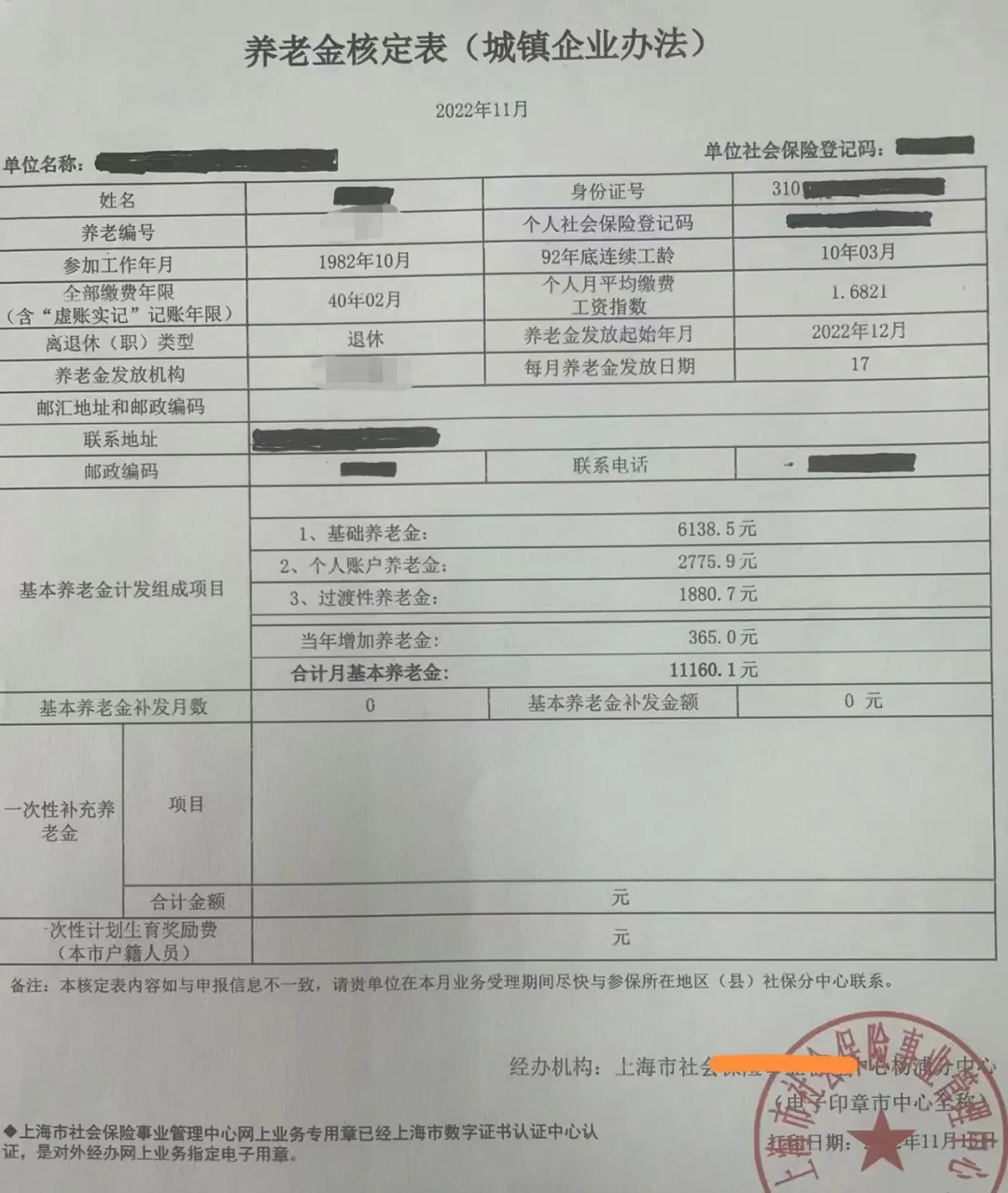 养老金曝光!上海某央企40年工龄员工退休金.网友:没见过比这更高的!