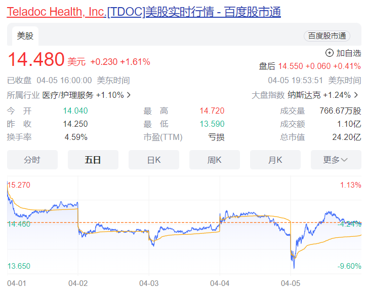 Teladoc Health是美国2002年成立的在线问诊公司,于2015年在美股上市。业务类型类似中国的“平安好医生”。