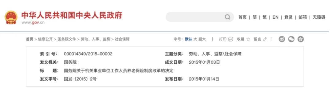 说到养老金并轨,我们需要追溯到2015年国务院印发的《关于机关事业单位工作人员养老保险制度改革的决定》(下称《决定》)