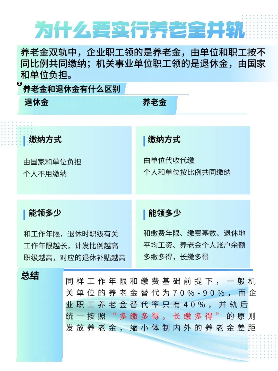 《决定》中明确自2014年10月1日起改革机关事业单位养老保险制度,并实行社会统筹与个人账户相结合且与企业职工相统一的基本养老保险制度,这一改革措施被称为养老金并轨。part1
