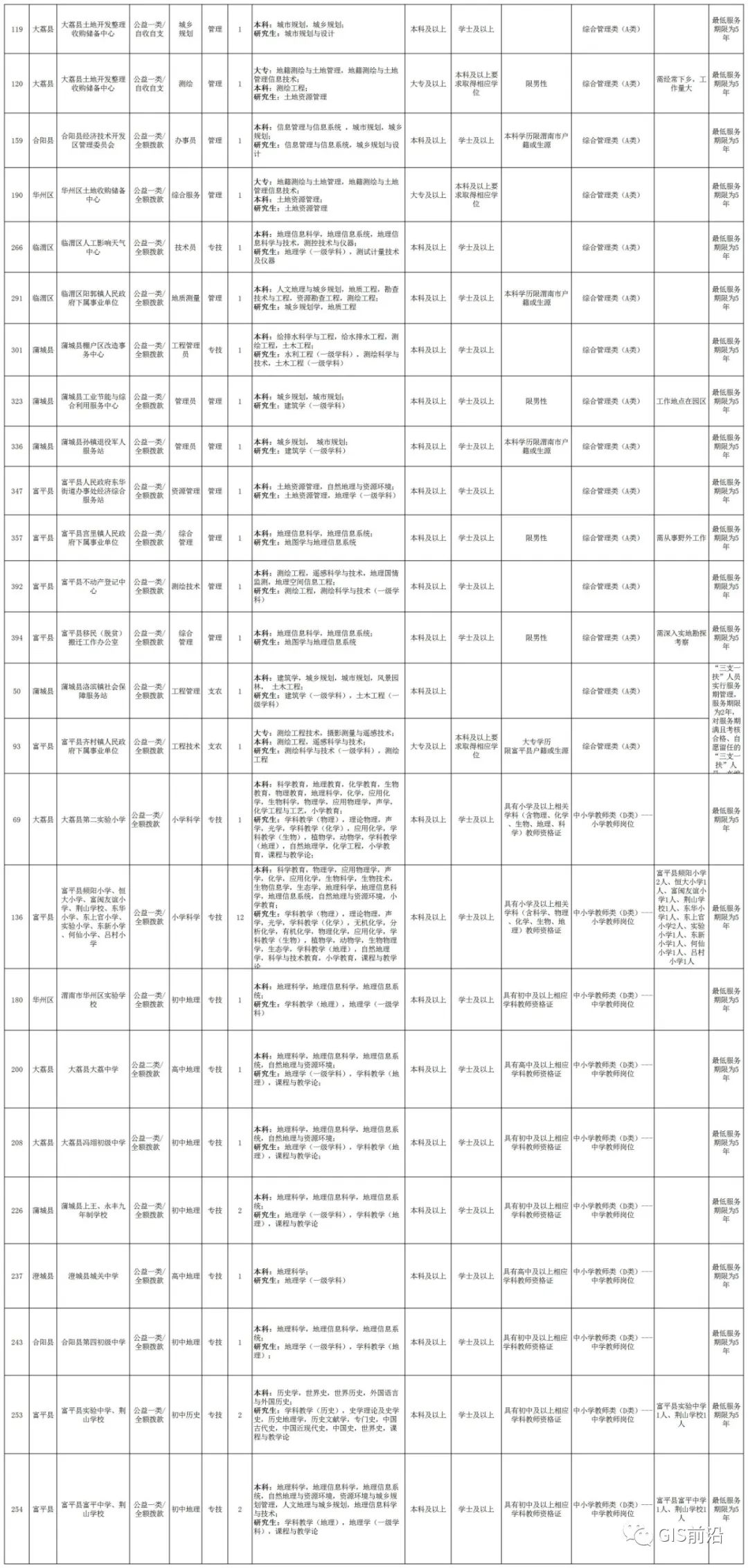下面是小助手整理的公开招聘岗位中涉及测绘、地信、遥感、规划、地理相关专业的岗位。