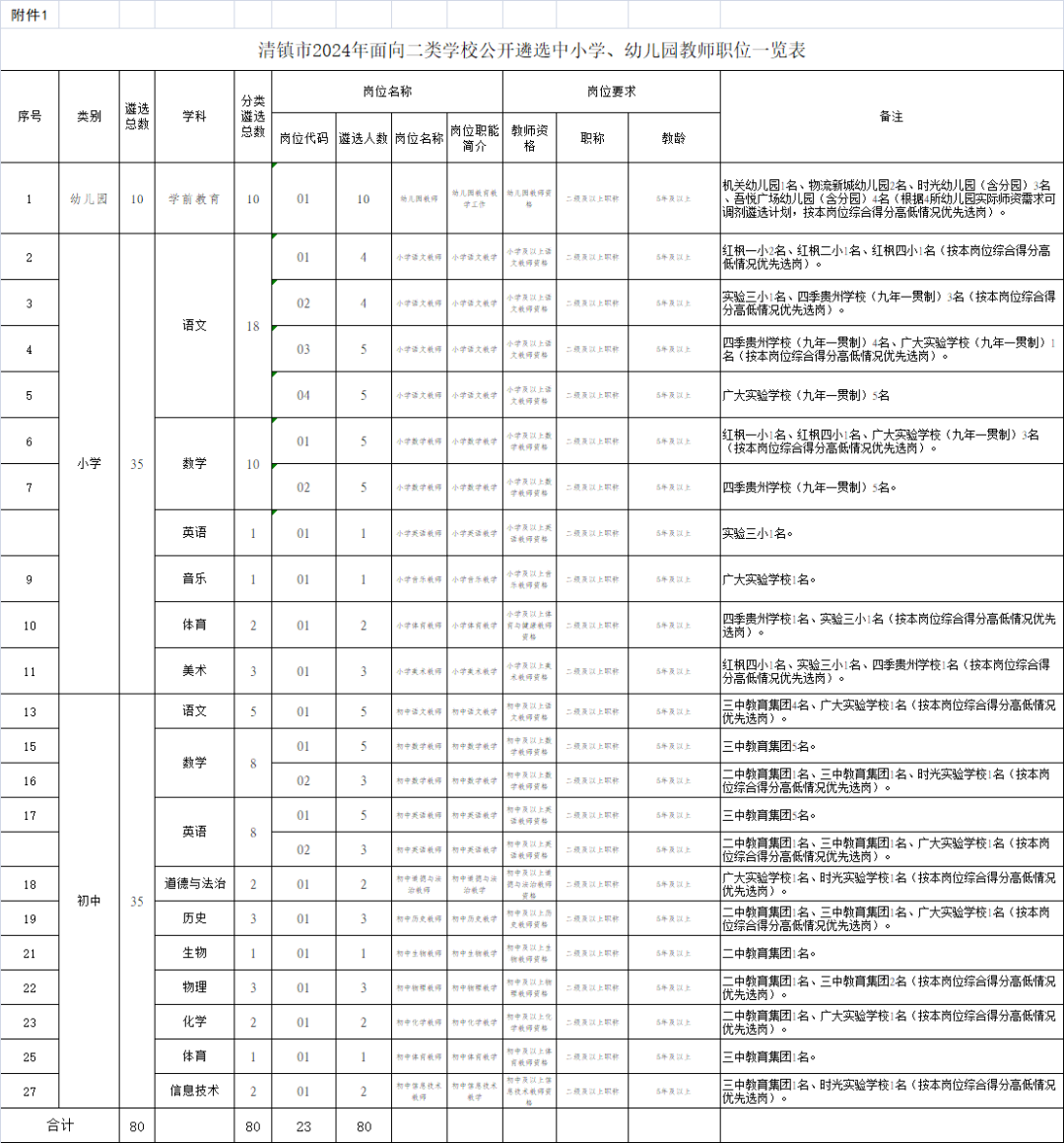 附件:1.清镇市2024年面向二类学校公开遴选中小学、幼儿园教师职位一览表