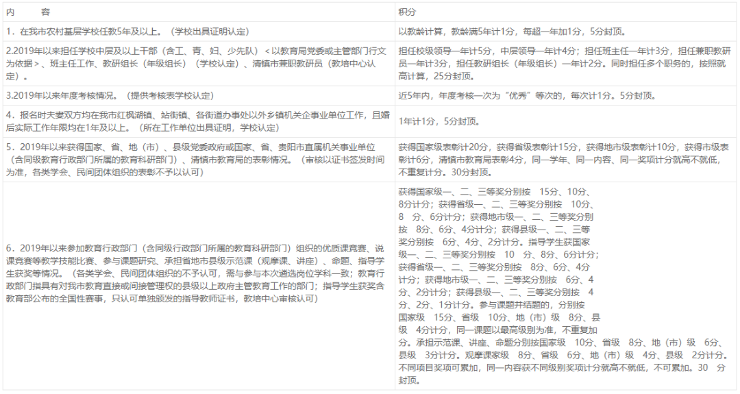 总分100分,具备下列条件的予以相应计分,由清镇市2024年面向二类学校公开遴选中小学、幼儿园教师工作领导小组对照参加遴选教师有关条件计算奖励性积分分值,奖励性积分按照40%计入个人遴选总成绩。报名人员须在2024年4月9日20:00前将所有奖励性积分的相关印证资料提交清镇市2024年面向二类学校公开遴选中小学、幼儿园教师工作领导小组办公室审核,逾期不予受理。参加遴选教师积分情况将在清镇市人民政府网上进行公布(5个工作日)。