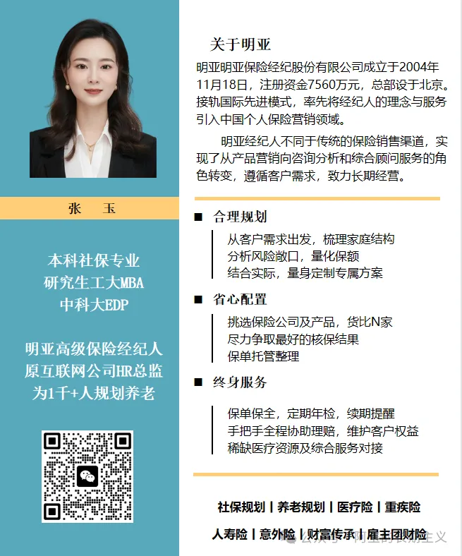 保障期间分为保障终身和保障定期: 保障定期一般有20/30年或者保至85岁,如果保障期结束还生存,会一次性返还一大笔钱(比如未来6年的总养老金)并合同终止。一些对身体毫无信心的人可能会做这个选择。 而保障终身顾名思义,就是合同保障至生命结束。通常会建议保障终身,因为生命无法预知,养老金区别其他金融工具的最大魅力就是与生命等长。 03 选择产品领取方式 产品领取总体分为三类:领取金额高账户余额少、领取金额低账户余额高、保证领取型。 领取金额高账户余额少 每年领取的养老金金额高,账户的现金价值会快速减少,甚至为0,这类就是典型的养老金形态,不考虑灵活性(退保取出)和财富传承。 典型的产品:富德鑫禧年年(计划一) 通常适合以下三类人群: 1. 顾及养老生活质量、社保养老金不够高的人。 2. 身体好,家族有长寿基因的人群。 3. 丁克人群,没有后代需要传承也很合适。 领取金额低账户余额高 与上面相反,每年领取的养老金金额低,账户里的现金价值高,甚至投入的总保费一直在,可随时退保拿回总保费。 典型的产品:富德鑫禧年年(计划二) 通常适合以下三类人群: 1. 社保养老金或企业年金本身养老金充裕,只是作为补充。 2. 除了保费这笔钱外,没有其他积蓄,储备未来万一需要看病等大额支出。 3. 希望更多的把财富传承给子女,惠及后代。 保证领取型 在保证领取期内任何时候身故,还没有领取完的钱会赔付给身故受益人。通常有保证领取12年、15年、20年和25年等,保证领取期越长,每年领取金额越少,但是保证领取期内身故总利益更高。 典型的产品:大家养老大富之家(典藏版) 比如保证领取20年,如果被保险人在开始领取5年后不幸去世了,剩下15年没有领取的总养老金,会以身故保险金方式一次性赔付给受益人。在利益表上体现为20年里身故总利益(身故金赔付+累计领取)是不变的。 通常适合以下人群: 身体状况不太好,对寿命不够有信心的群体 由于养老金领取是发生在若干年后,可能随着自己的财务和身体情况而变化。所以尽可能考虑领取前可更改领取方式的产品。 比如投保了富德鑫禧年年,选择的领取计划1,后来赚了很多钱,不太需要依赖每个月的养老金支付生活开支,想要把更多的钱留给后代,那么就可以在领取去前变更为领取金额少账户金额高的计划2。 // 以上,对于对于配置养老金算是手把手式教学了,不过隔行如隔山,如您仍不清晰自己的需求或选择,也可以联系我,做一对一的需求分析,导出适合自己的养老金配置方式。 结束语 |
